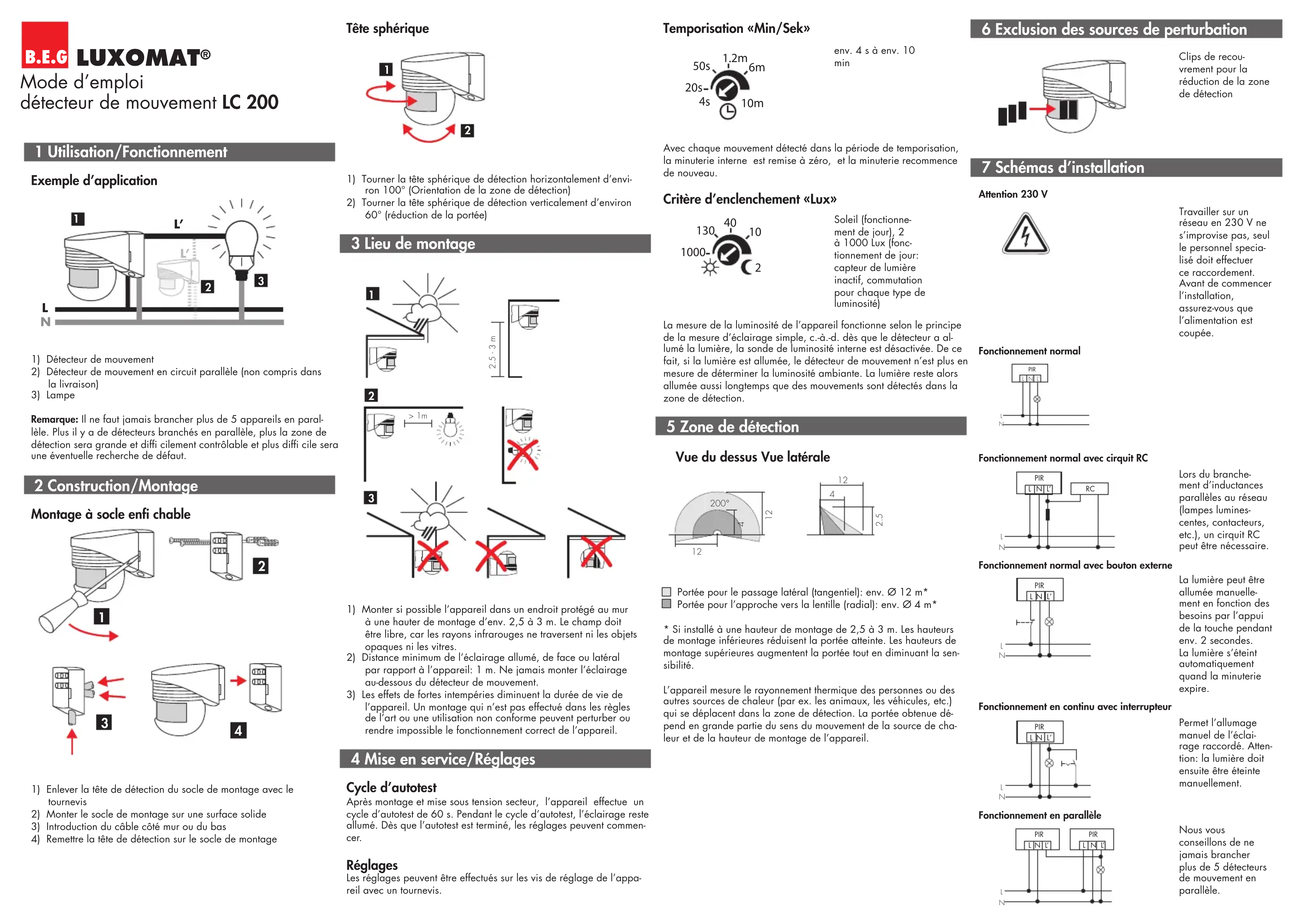 Luxomat LC 200 - Détecteur de mouvements B.E.G. - Notice d'utilisation et mode d'emploi gratuit
