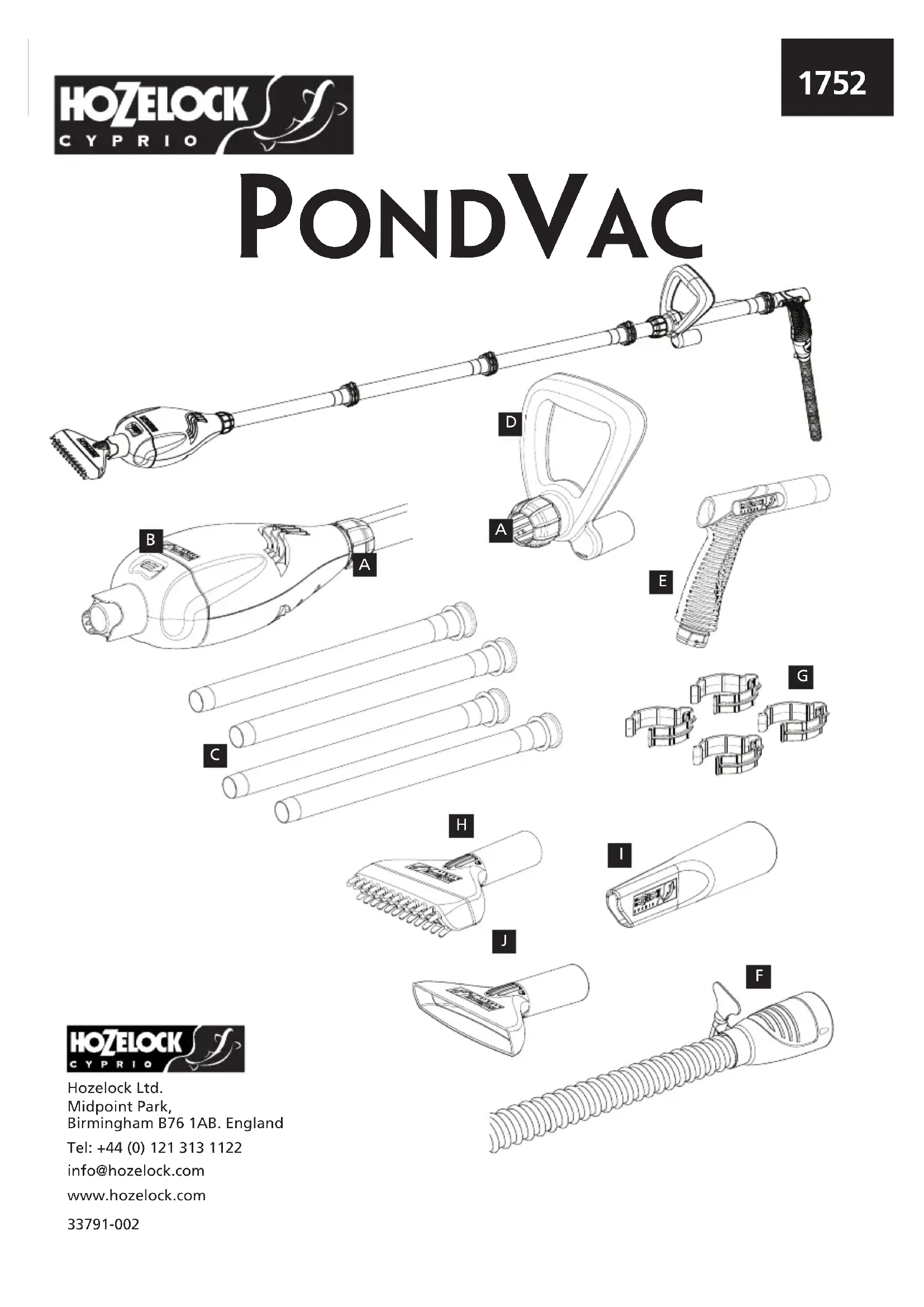 Retrouvez gratuitement la notice de l'appareil PondVac 1752 HOZELOCK au format PDF.