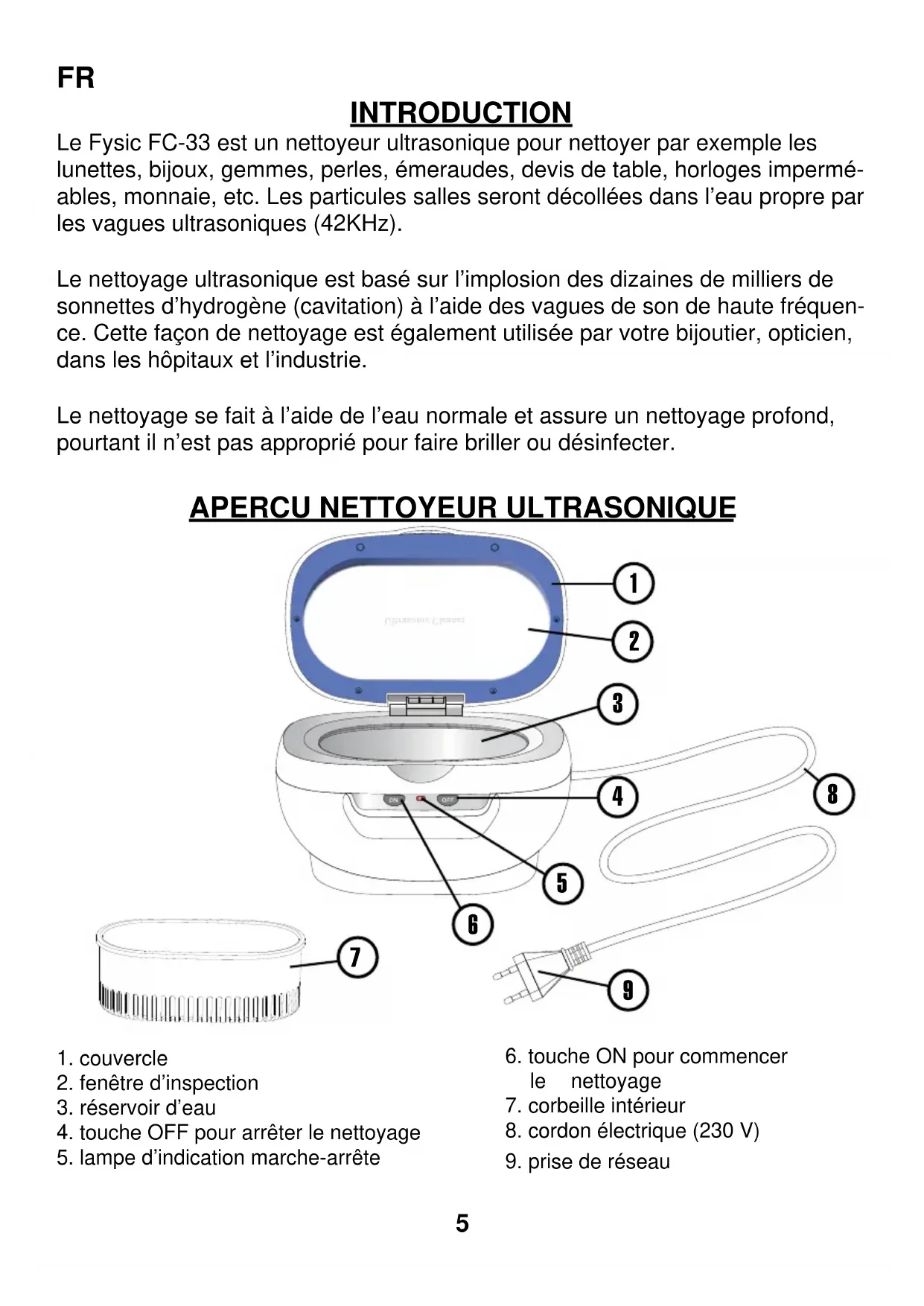 FC33 - Nettoyeur à ultrasons Fysic - Notice d'utilisation et mode d'emploi gratuit