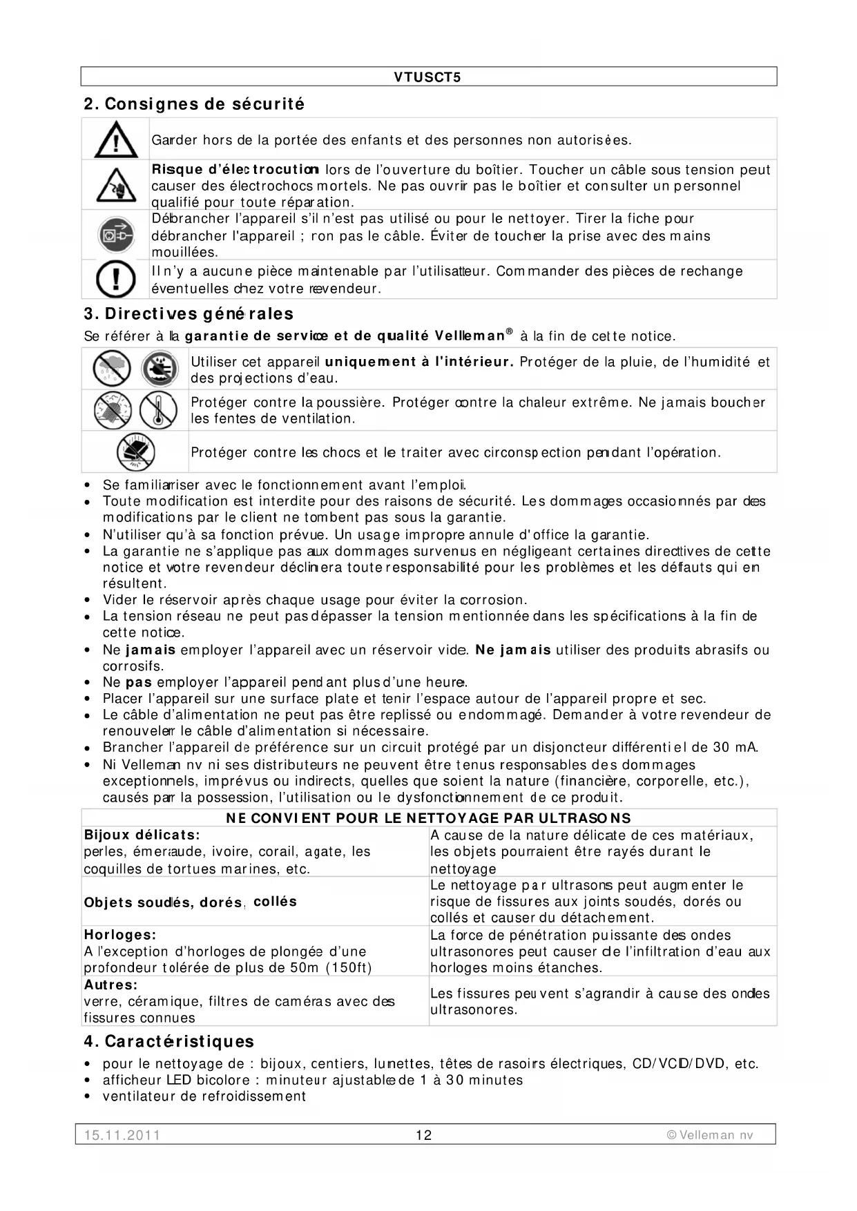 VTUSCT5 - Nettoyeur à ultrasons VELLEMAN - Notice d'utilisation et mode d'emploi gratuit