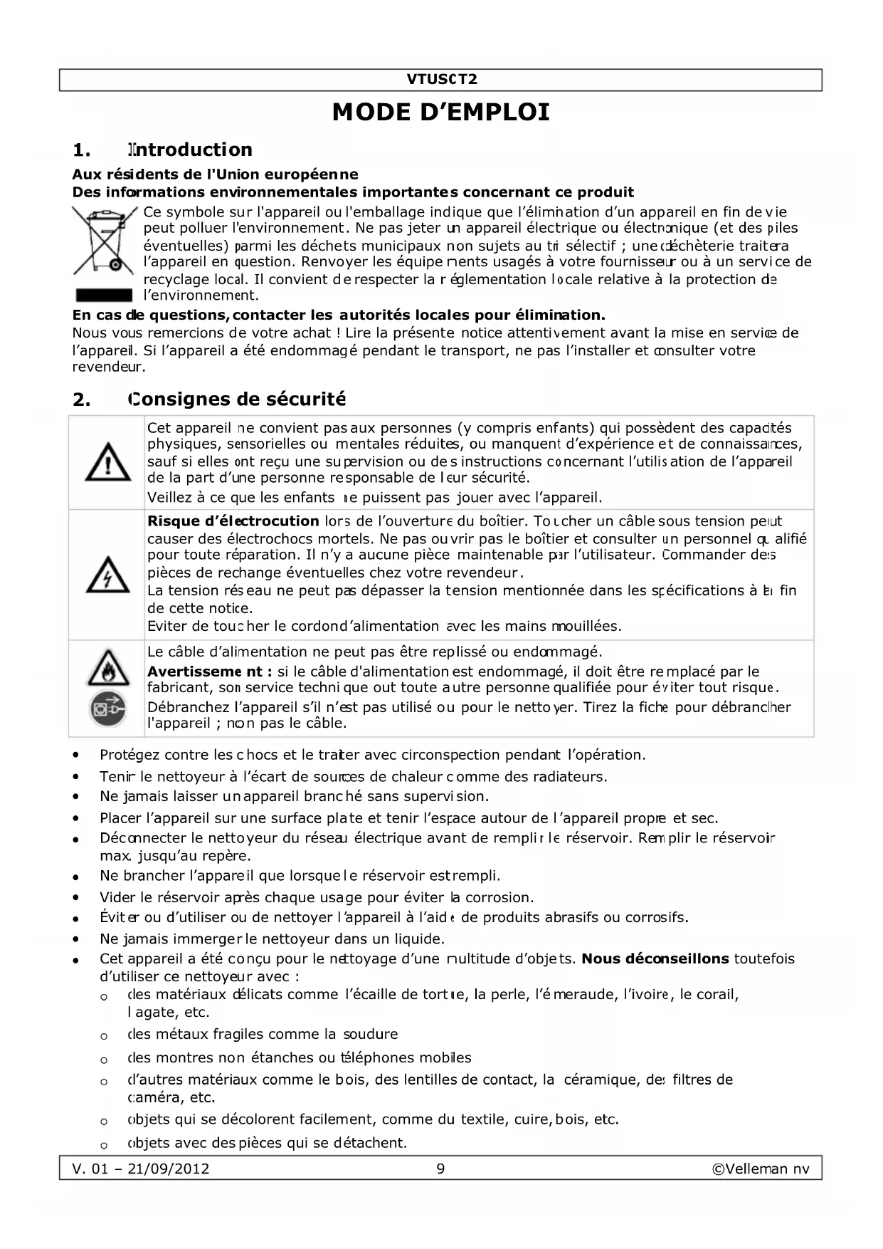 VTUSCT2 - Nettoyeur à ultrasons VELLEMAN - Notice d'utilisation et mode d'emploi gratuit