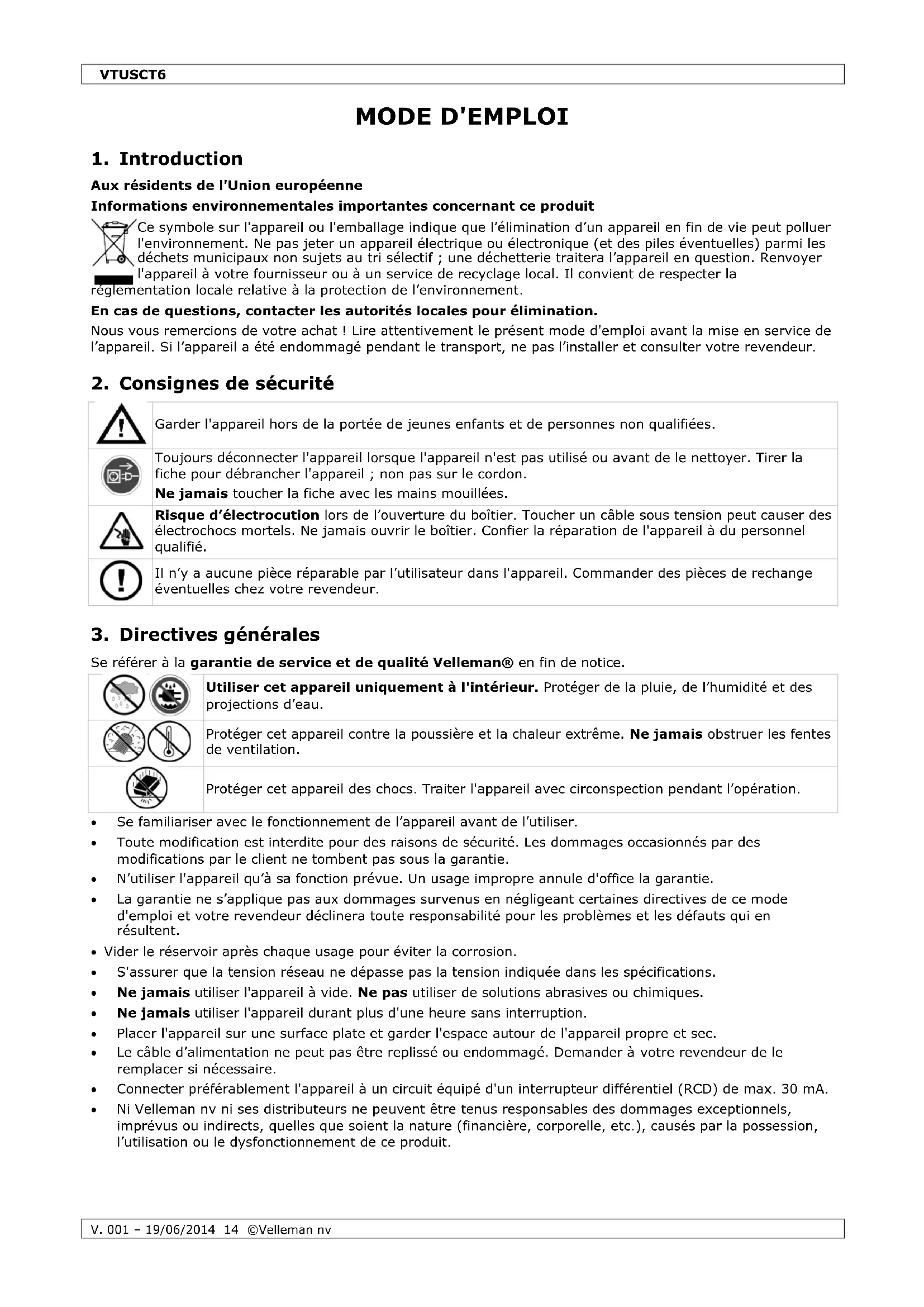 MODE D'EMPLOI VTUSCT6 VELLEMAN