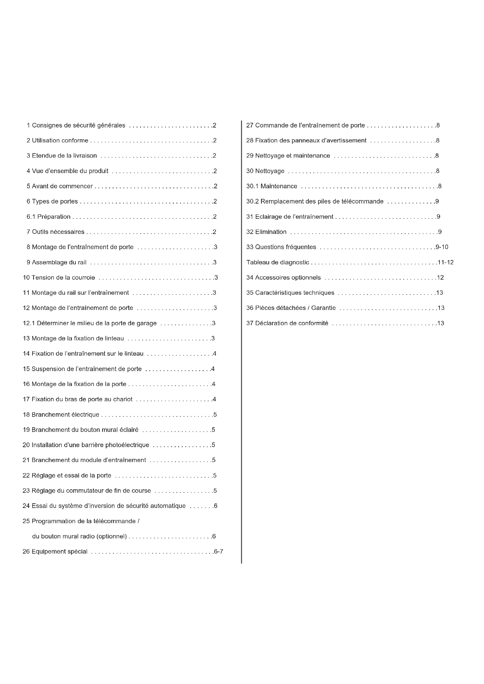 - -7 27 Commande de l’entraînement de porte p. 8