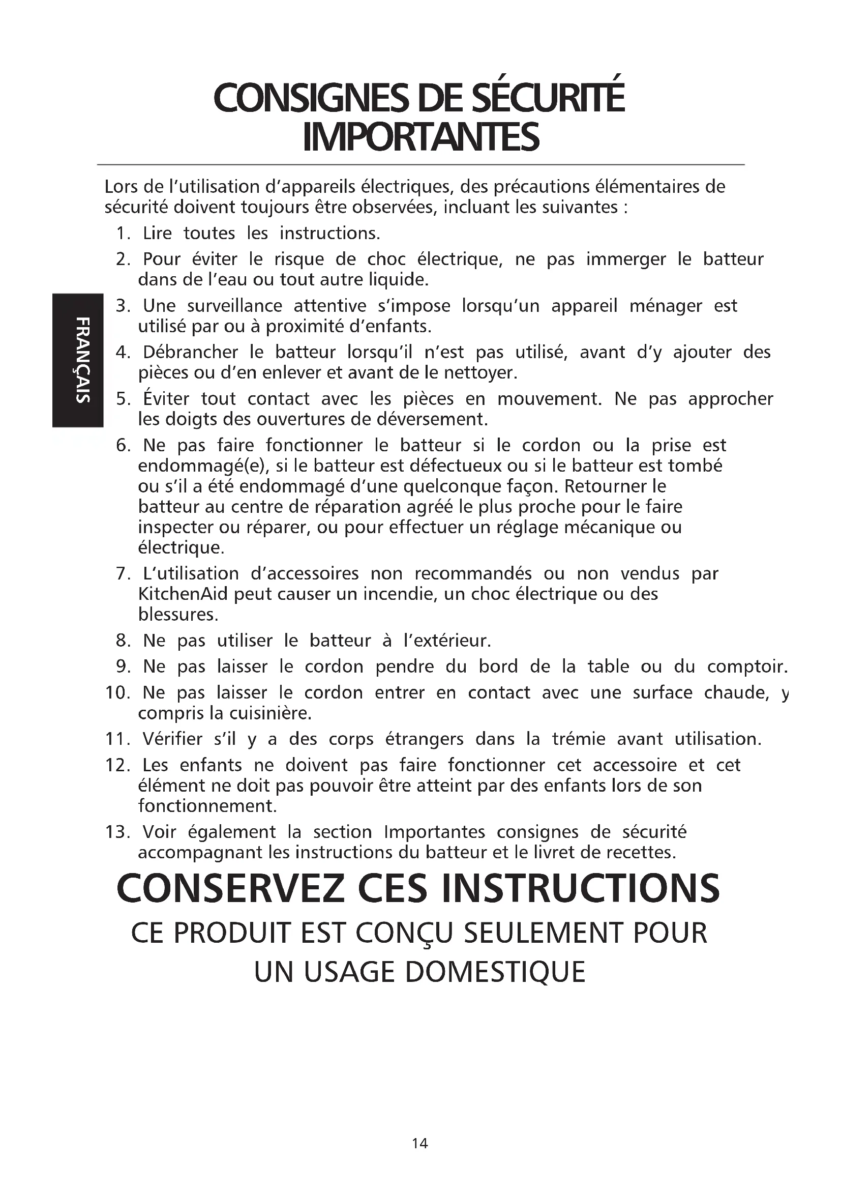 13. Voir également la section Importantes consignes de sécurité