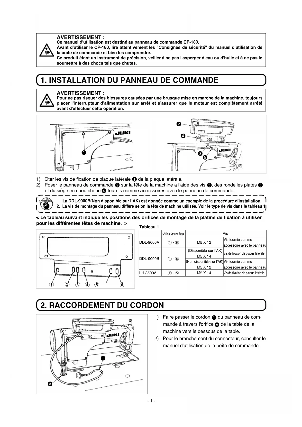 MODE D'EMPLOI CP180 JUKI