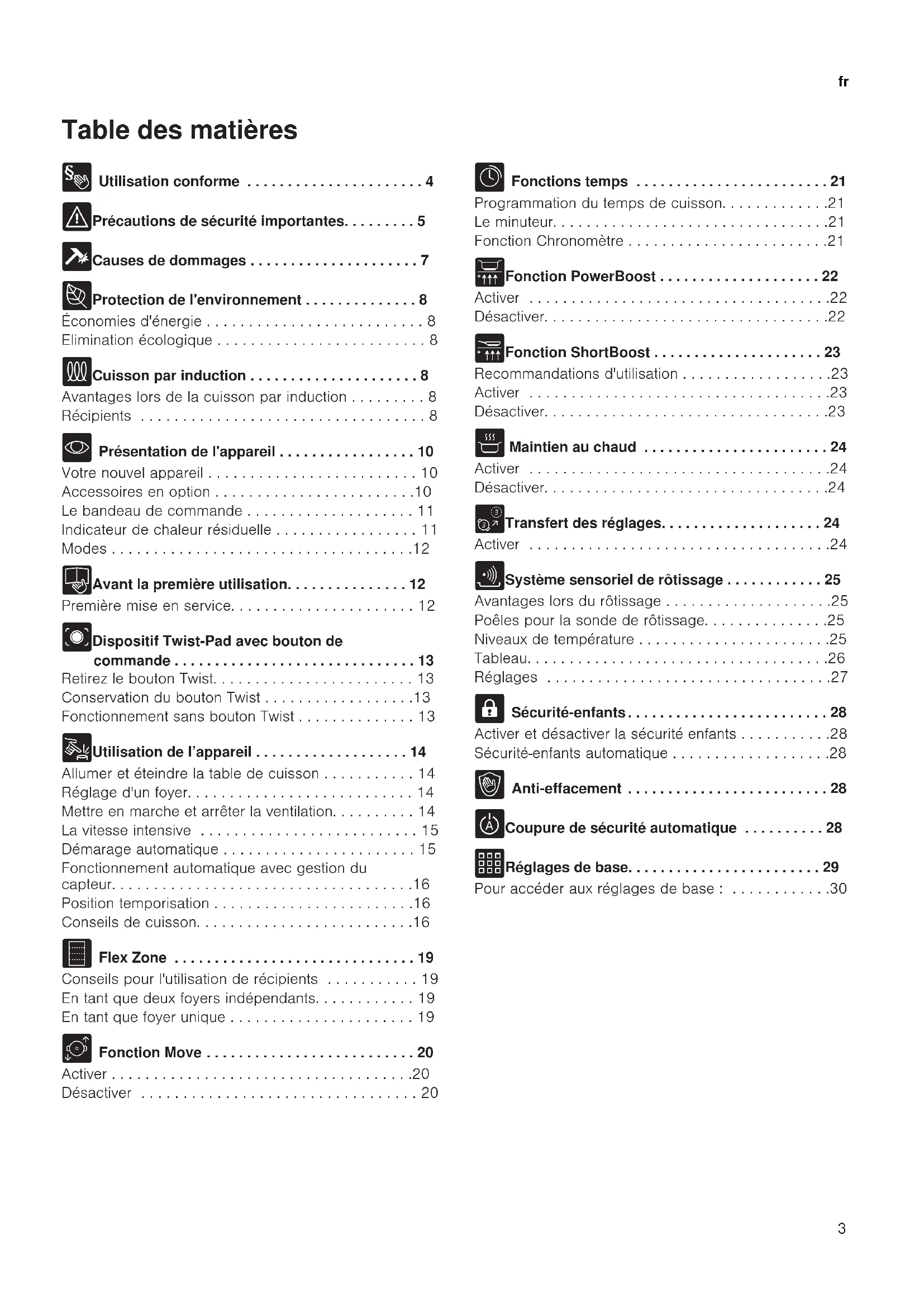 Cadre de la table de cuisson (uniquement pour les apparèils avec un cadre de table de cuisson) . .33