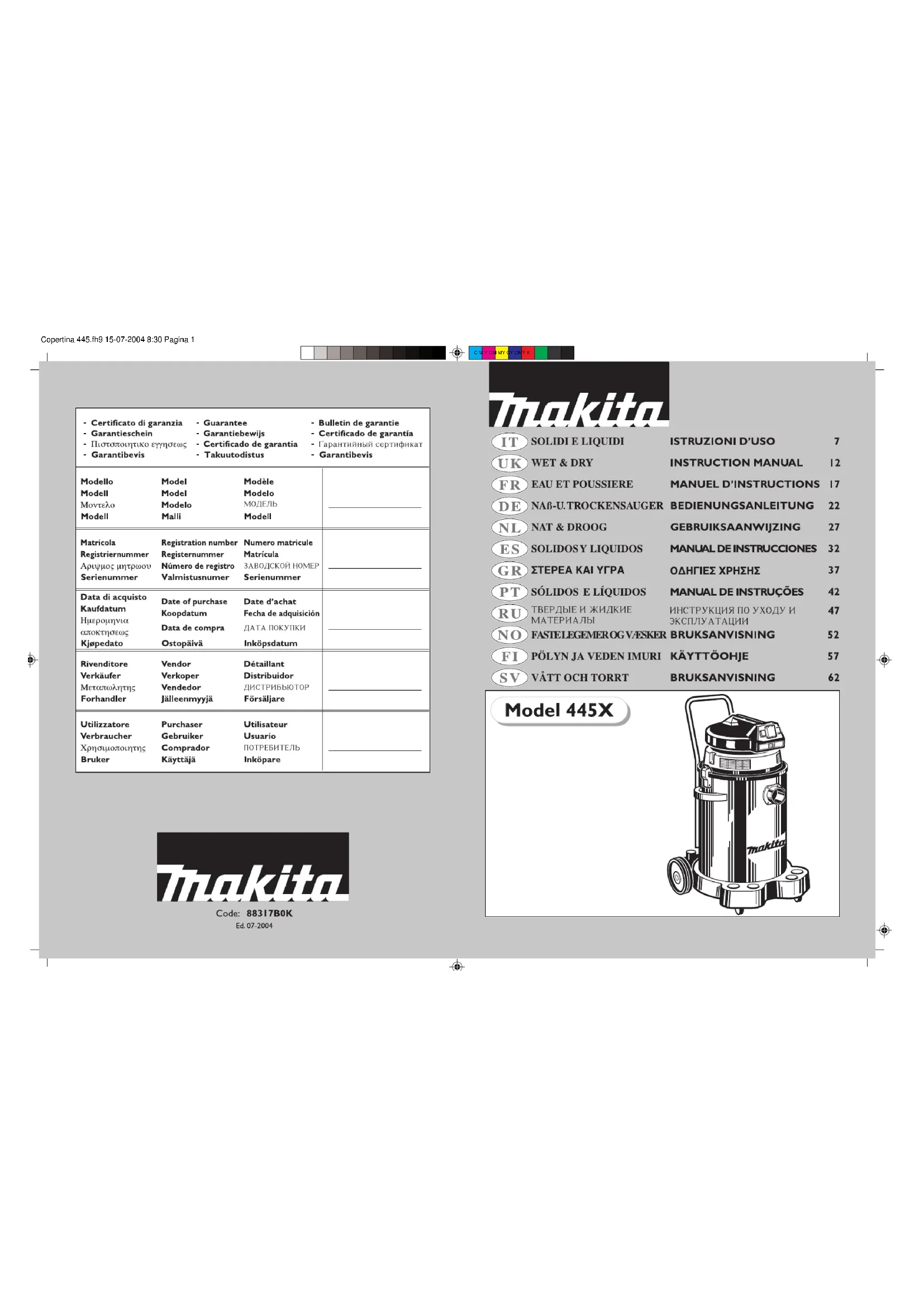 Retrouvez gratuitement la notice de l'appareil 445X MAKITA au format PDF.