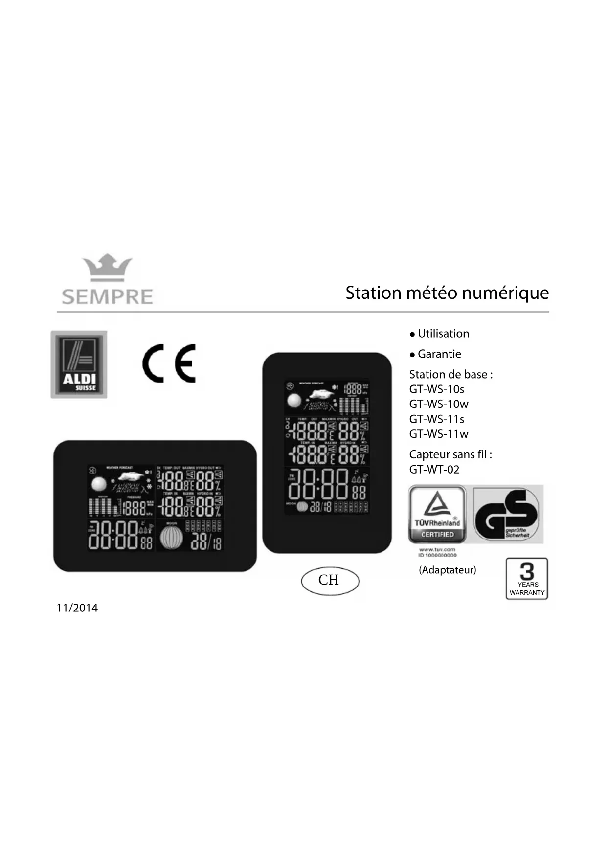 GTWS11w - Station Météo Sempre - Notice d'utilisation et mode d'emploi gratuit