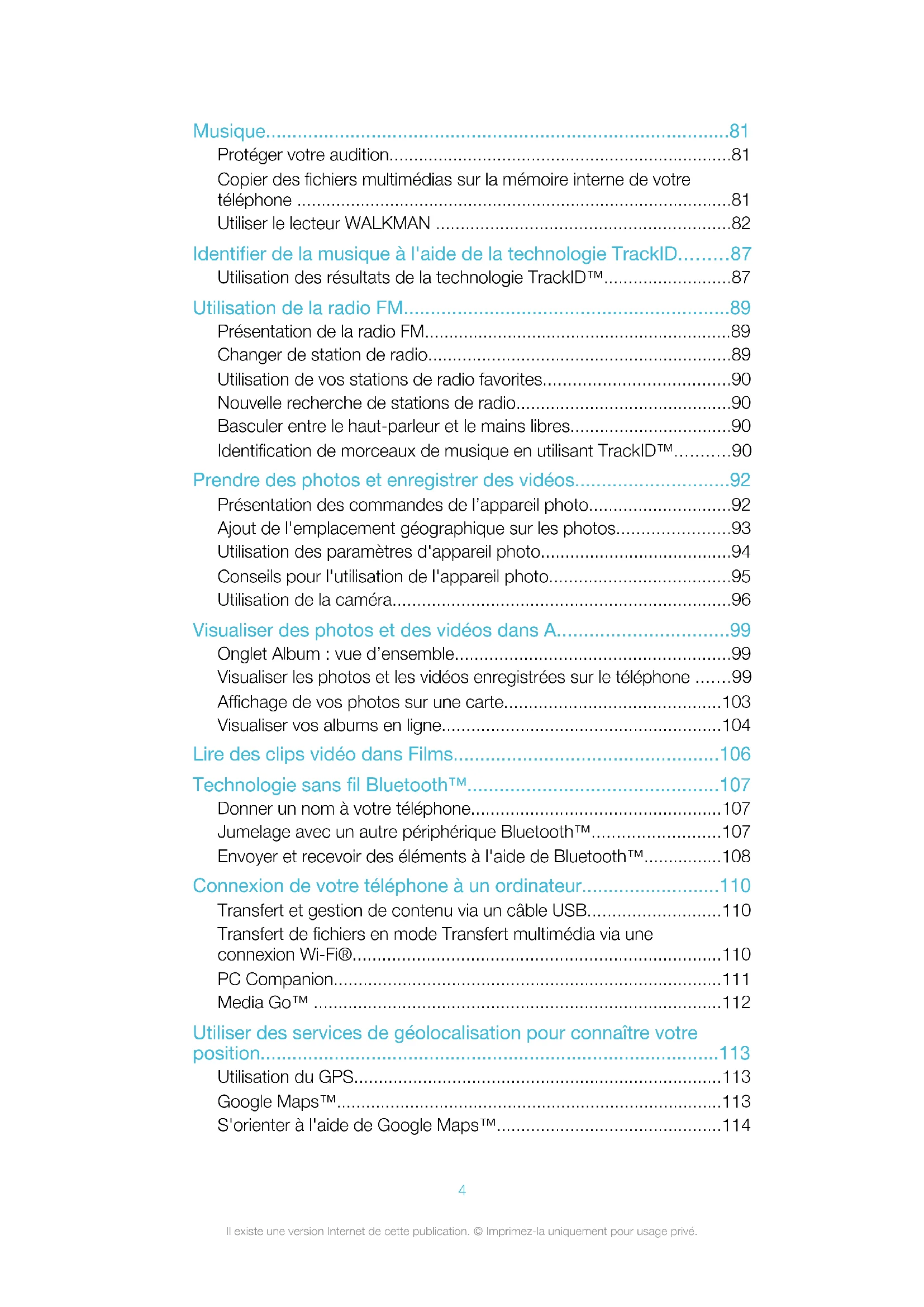 - Utiliser des services de géolocalisation pour connaître votre position p. 113