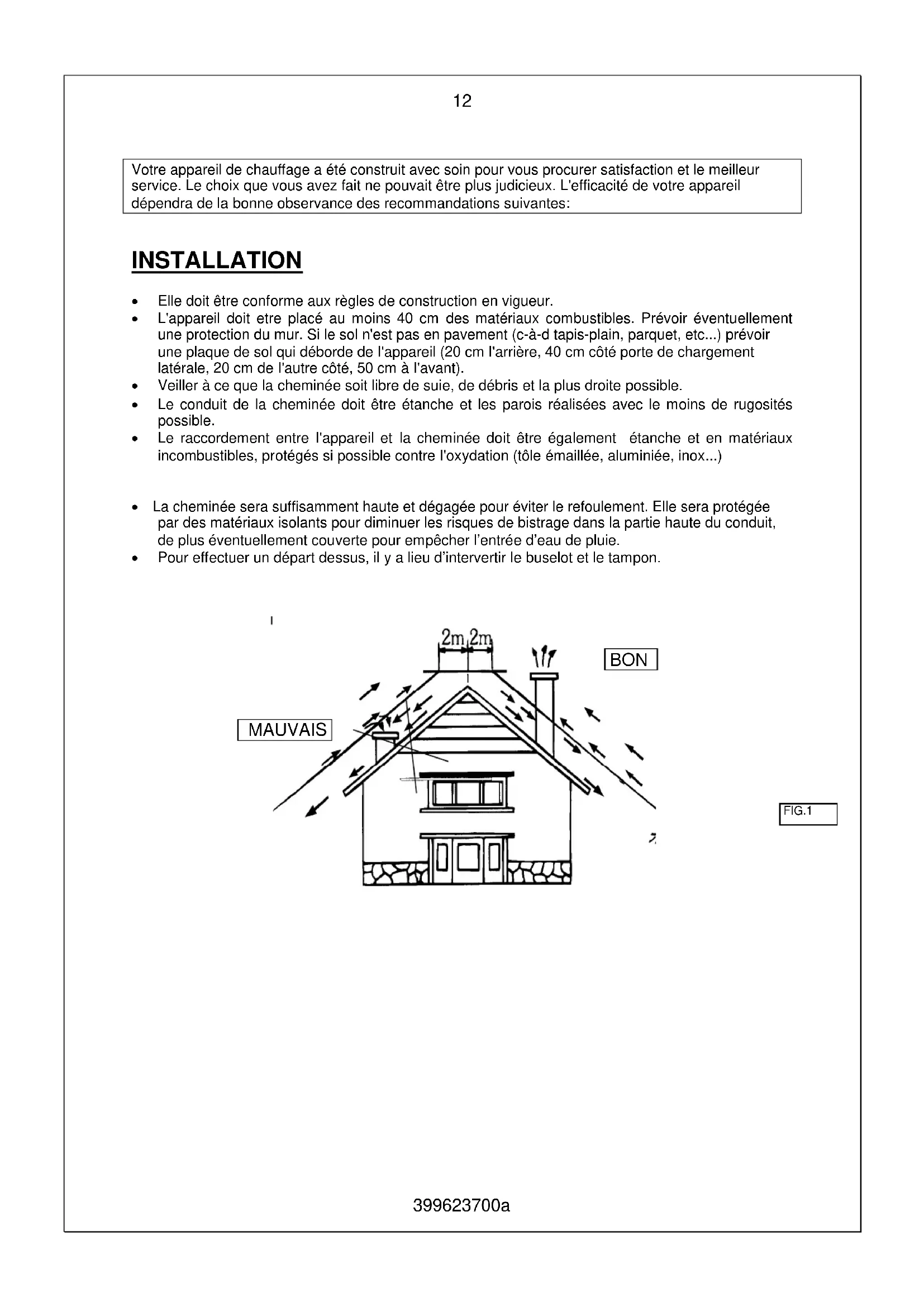 Votre appleil de chauffage a eted construit avec soin pour vous procurer satisfaction et le meilleur service. Le choix que you avez fait ne pouvait etre plus judicieux. L'efficacite de votre appleil dependra de la belle observance des recommendations suivantes: