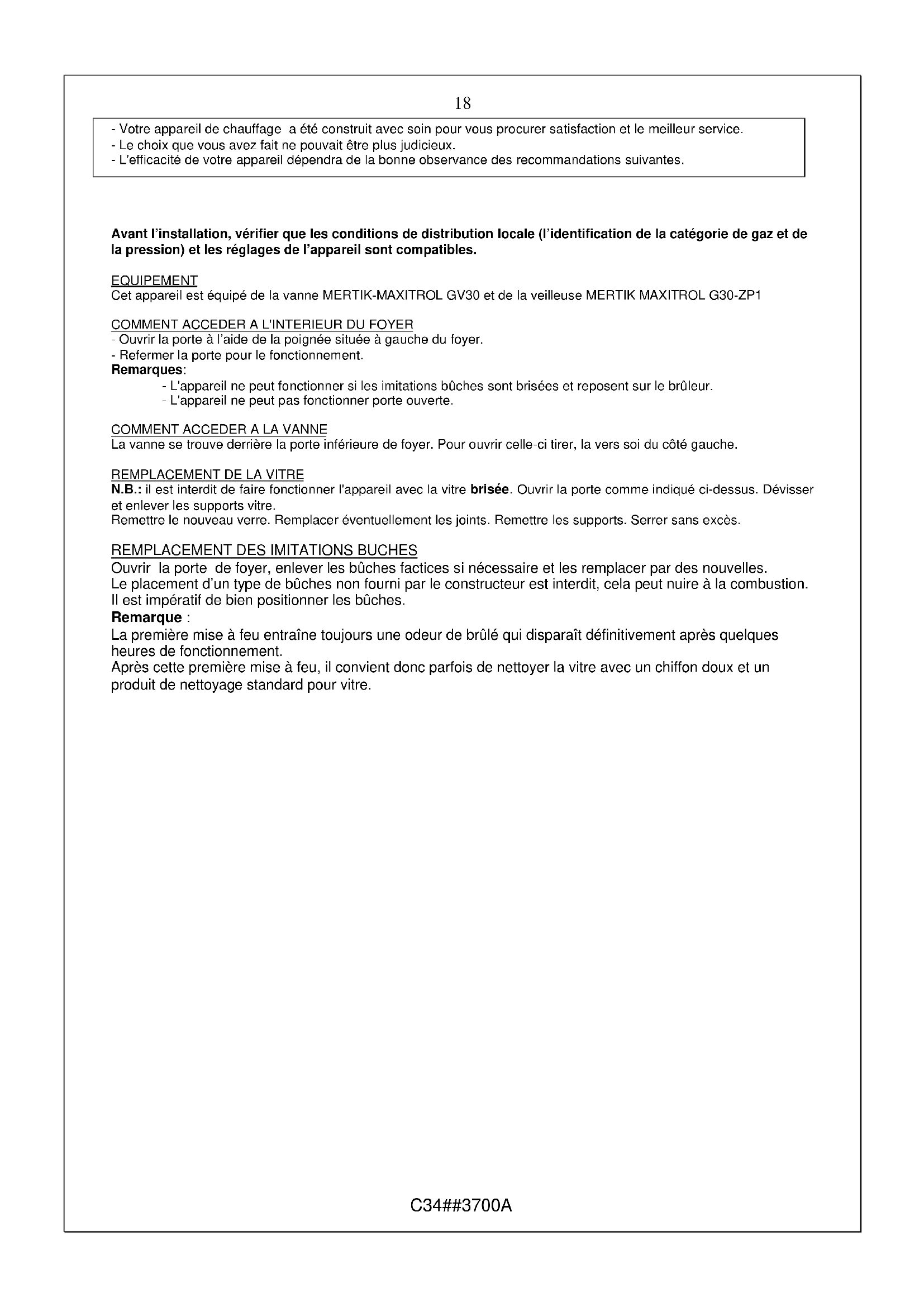 - La garantie ne couvre pas le thermocouple, le TTB, les injecteurs, la vitre, les imitations bûches.