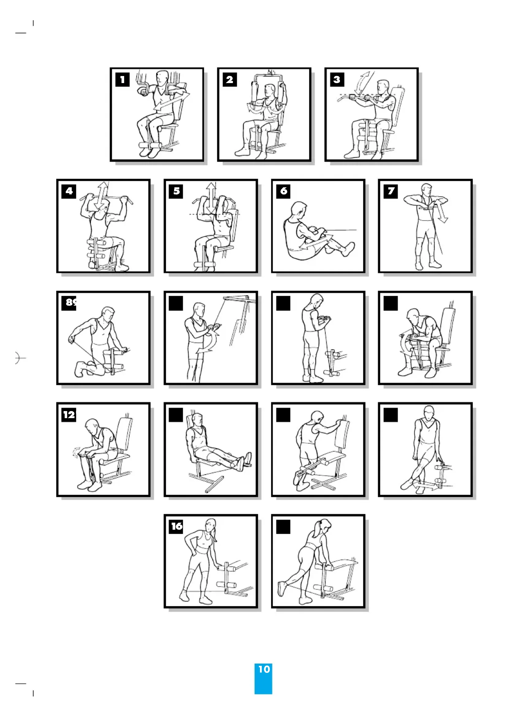 - Echauffez-vousavantchaqueséance par untravailcardio-vasculaire,des séries sanspoidsoudesexercicesausold’échauffementetd’étirements.Augmentezles c h a r g e s progressivement.•Effectueztouslesmouvementsavecrégularité,sansà-coups.•Gardez toujoursle dos plat.Evitez de creuserou d’arrondirle dospendantlemouvement.
