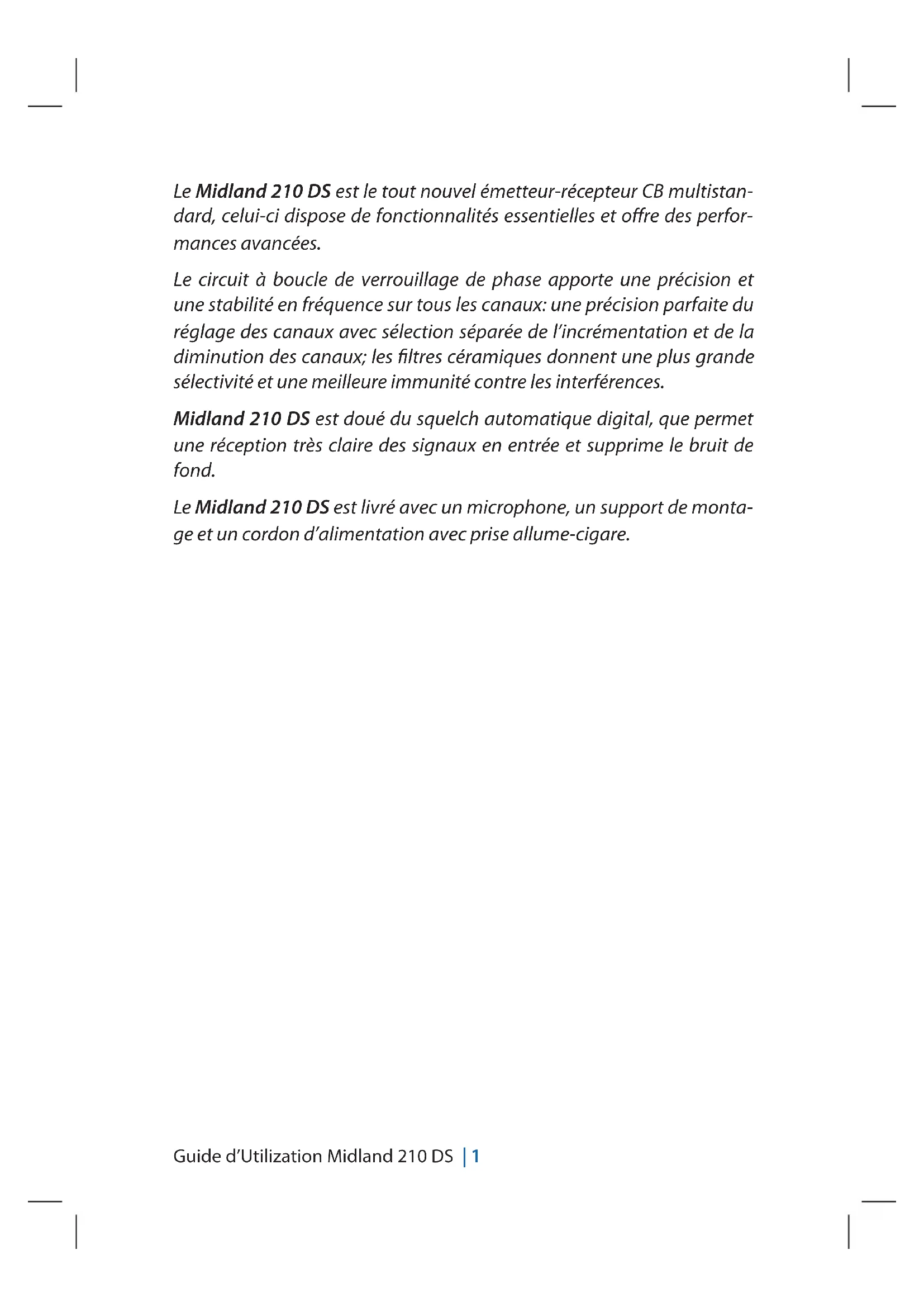 Retrouvez gratuitement la notice de l'appareil 210 DS MIDLAND au format PDF.