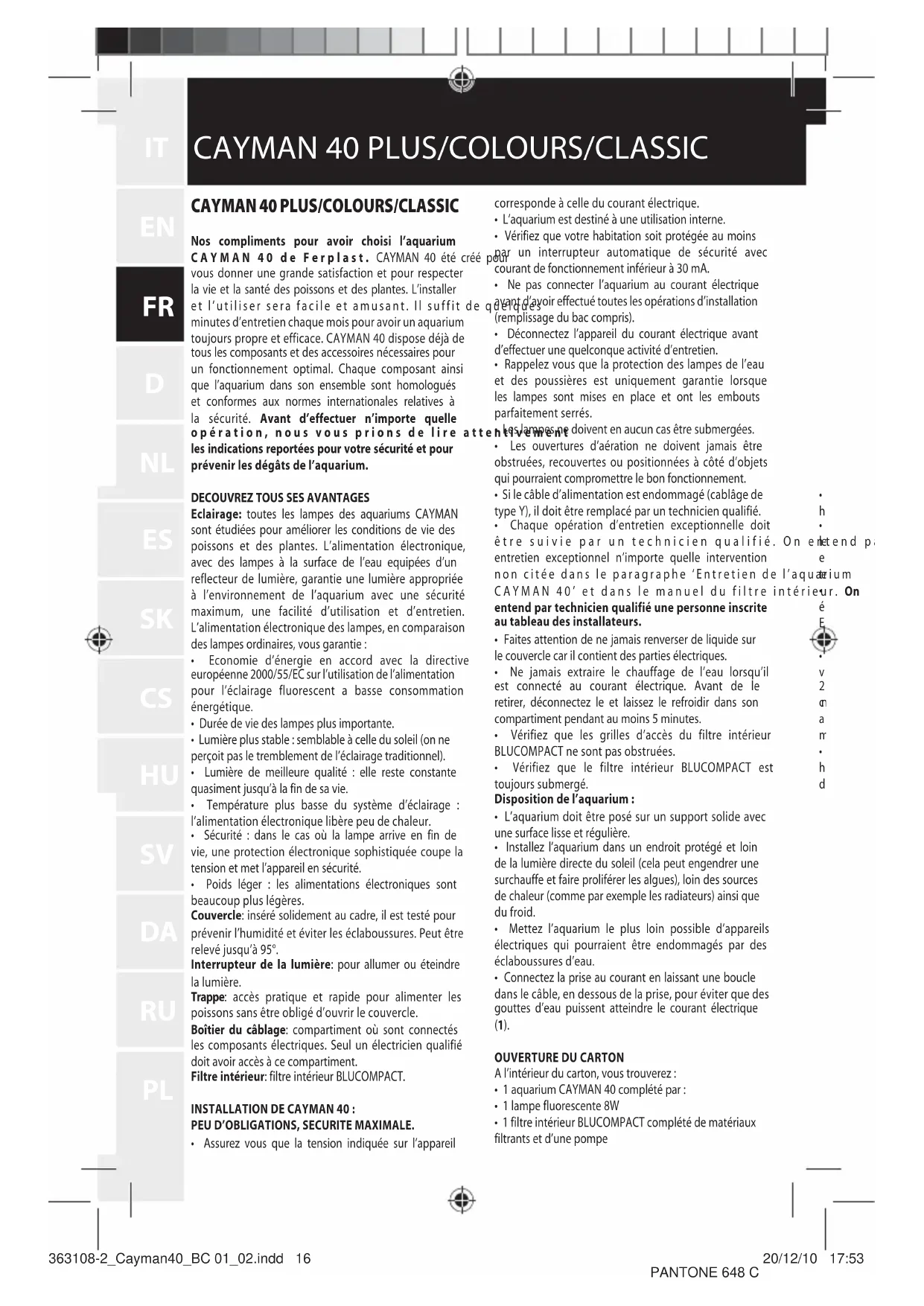 MODE D'EMPLOI Cayman 40 Colours Ferplast