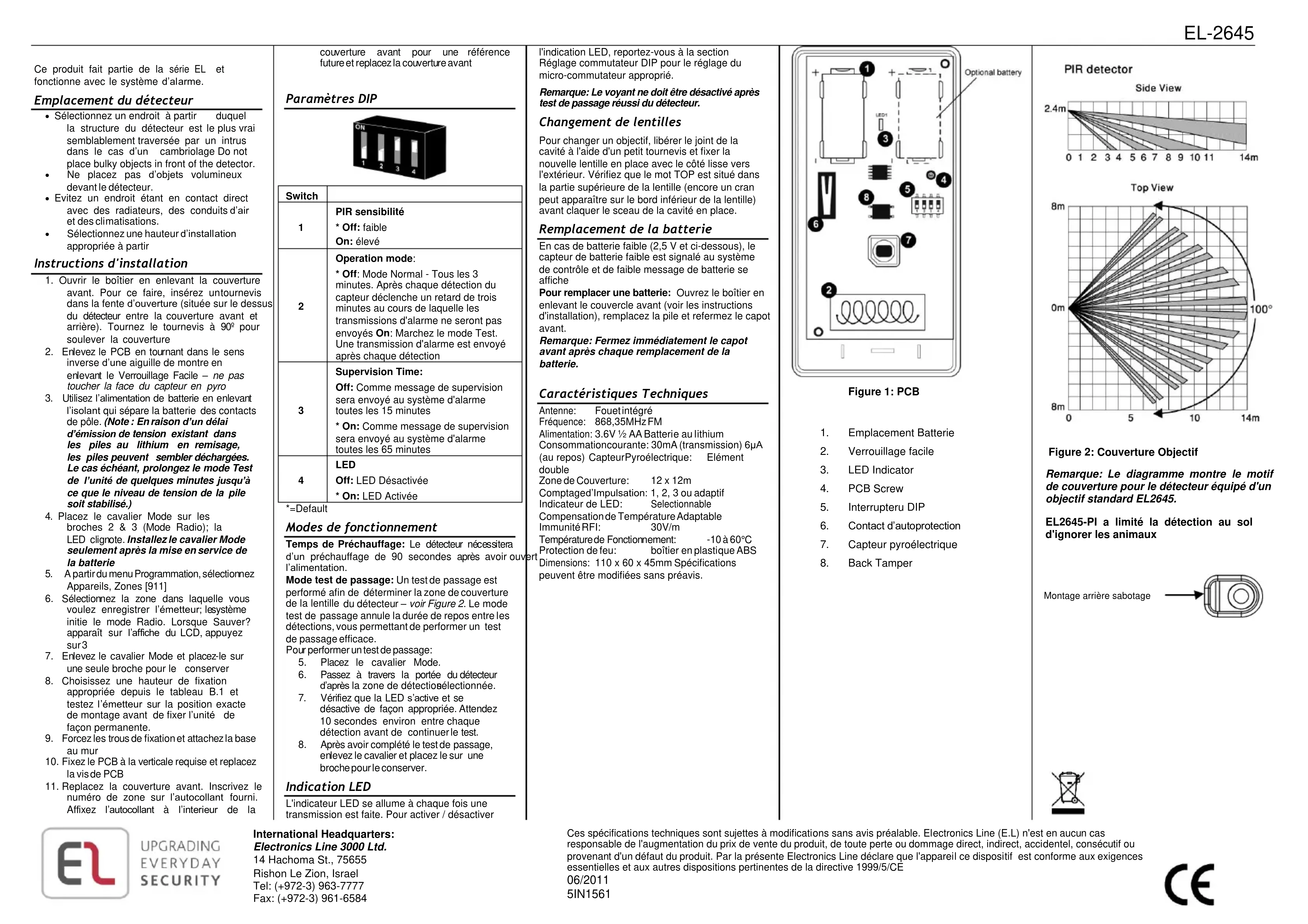 Ce produit fait partir de la série EL et fonctionne avec le système d'alarme.
