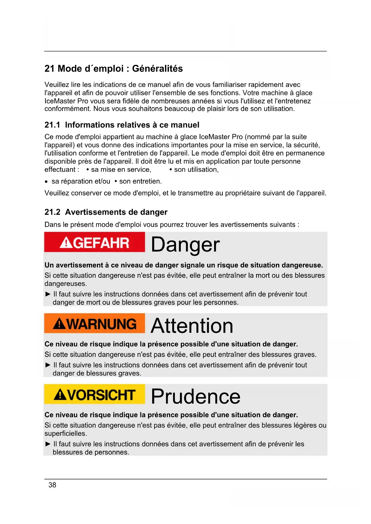 21.2 Avertissements de danger