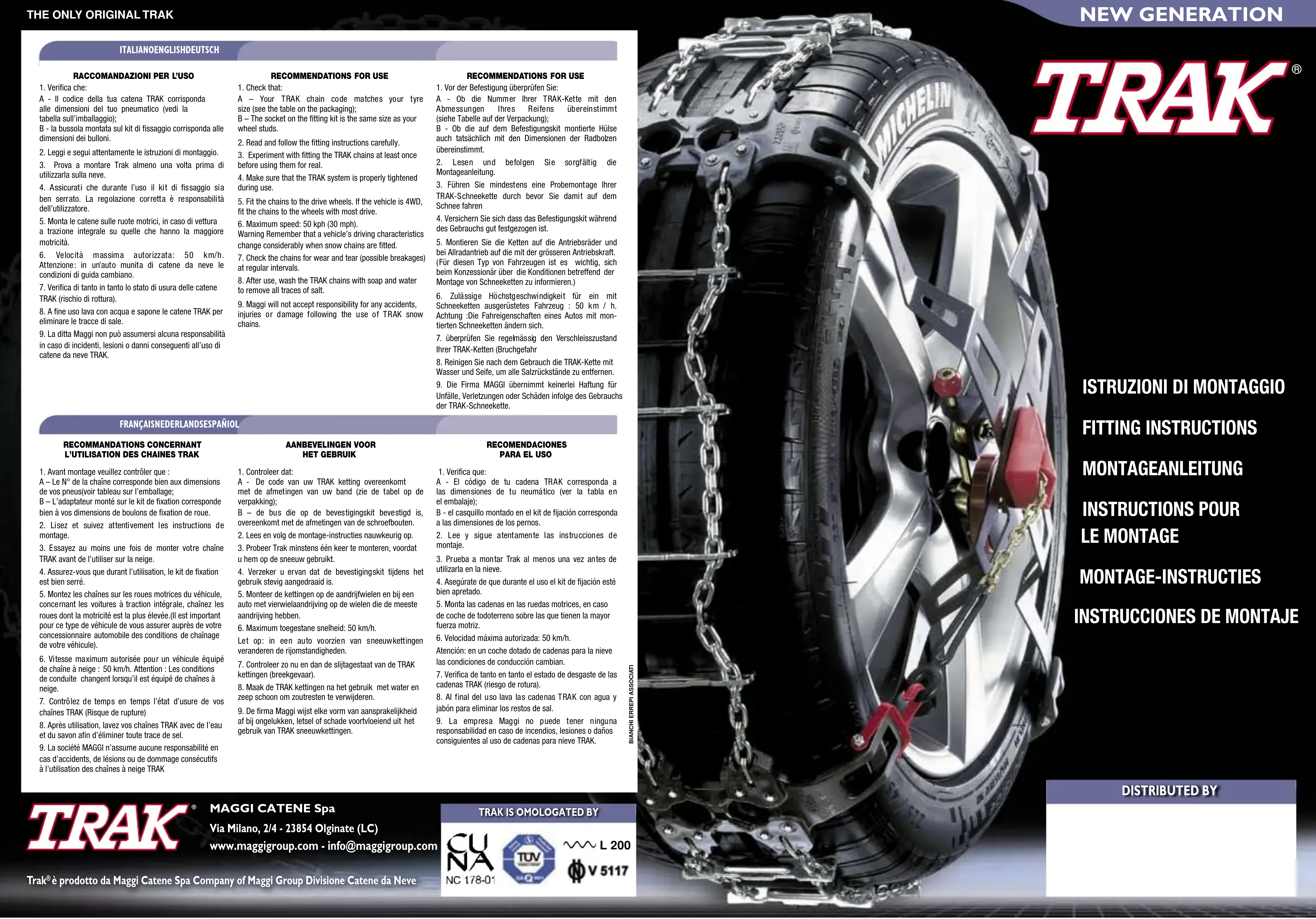Tourisme - Chaîne à neige Trak - Notice d'utilisation et mode d'emploi gratuit