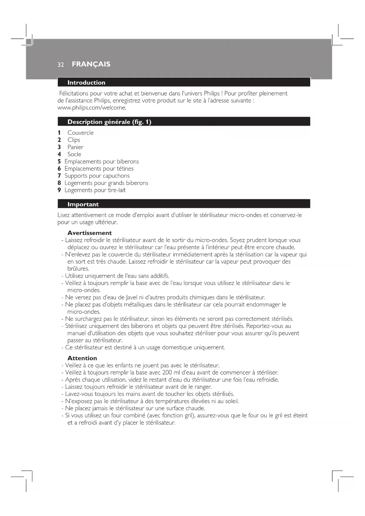 Avent SCF283 - Stérillisateur de bouteille PHILIPS - Notice d'utilisation et mode d'emploi gratuit