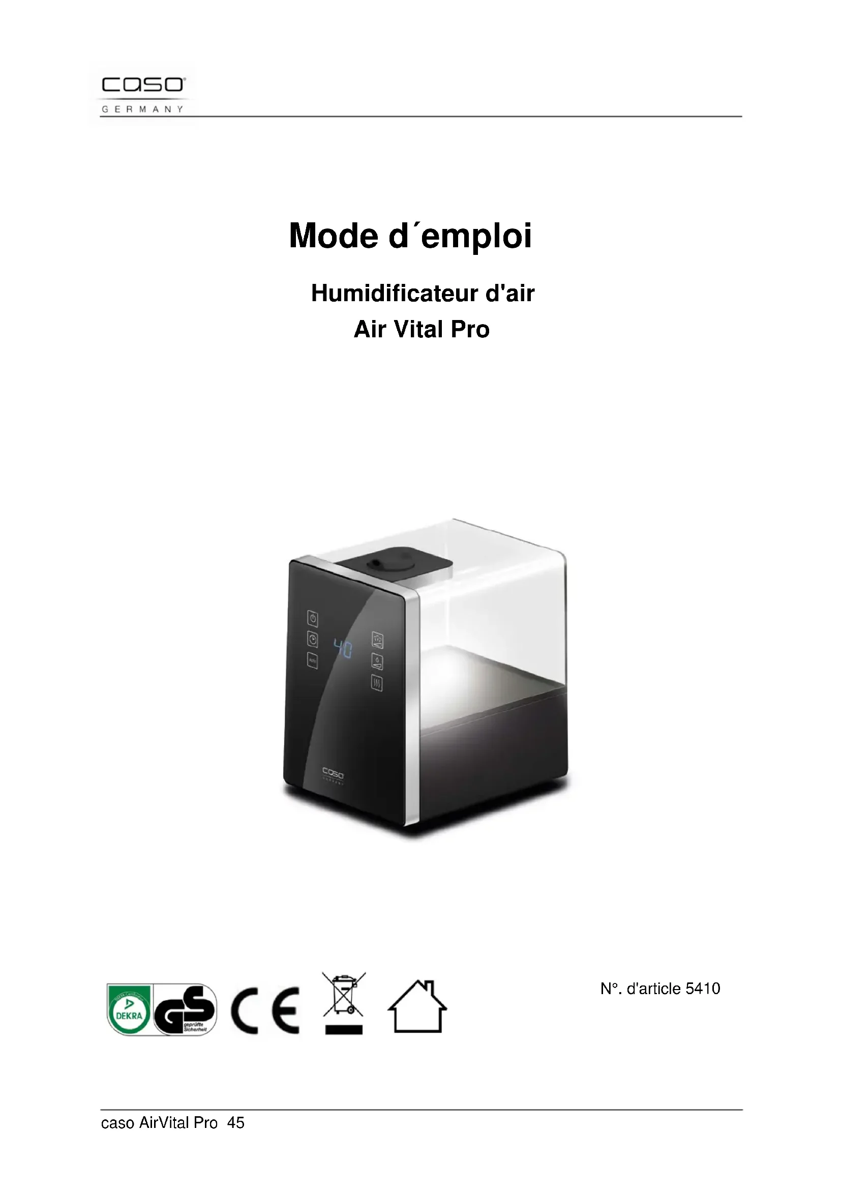 AirVital Pro - Humidificateur CASO - Notice d'utilisation et mode d'emploi gratuit