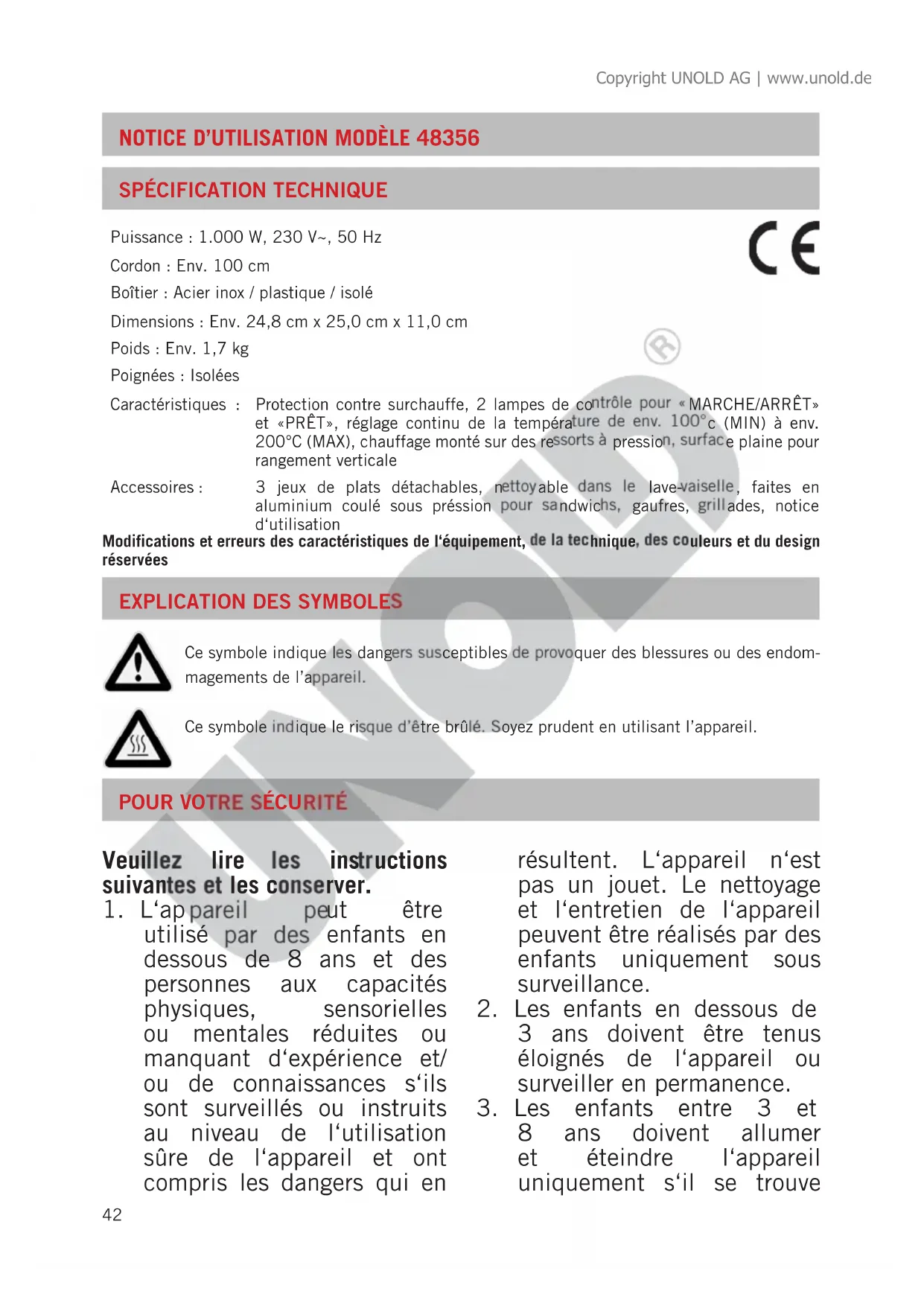 Retrouvez gratuitement la notice de l'appareil 48356 UNOLD au format PDF.