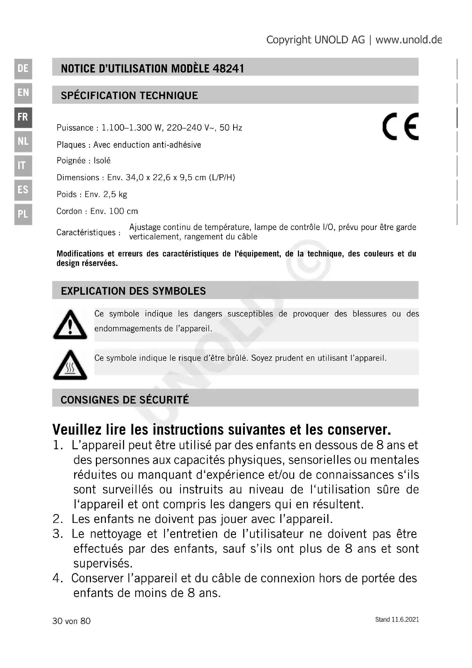 Retrouvez gratuitement la notice de l'appareil 48241 UNOLD au format PDF.