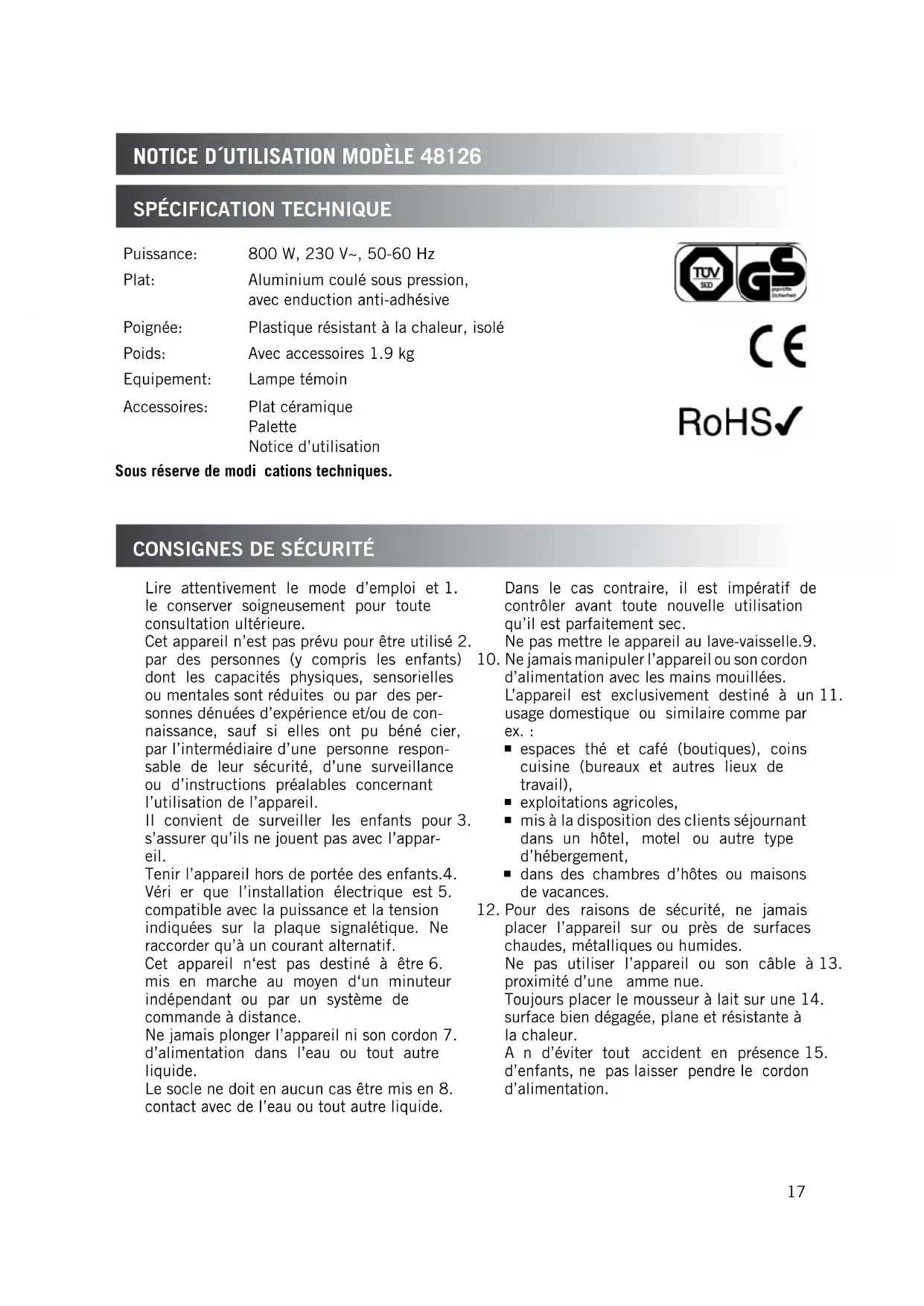Retrouvez gratuitement la notice de l'appareil 48126 UNOLD au format PDF.