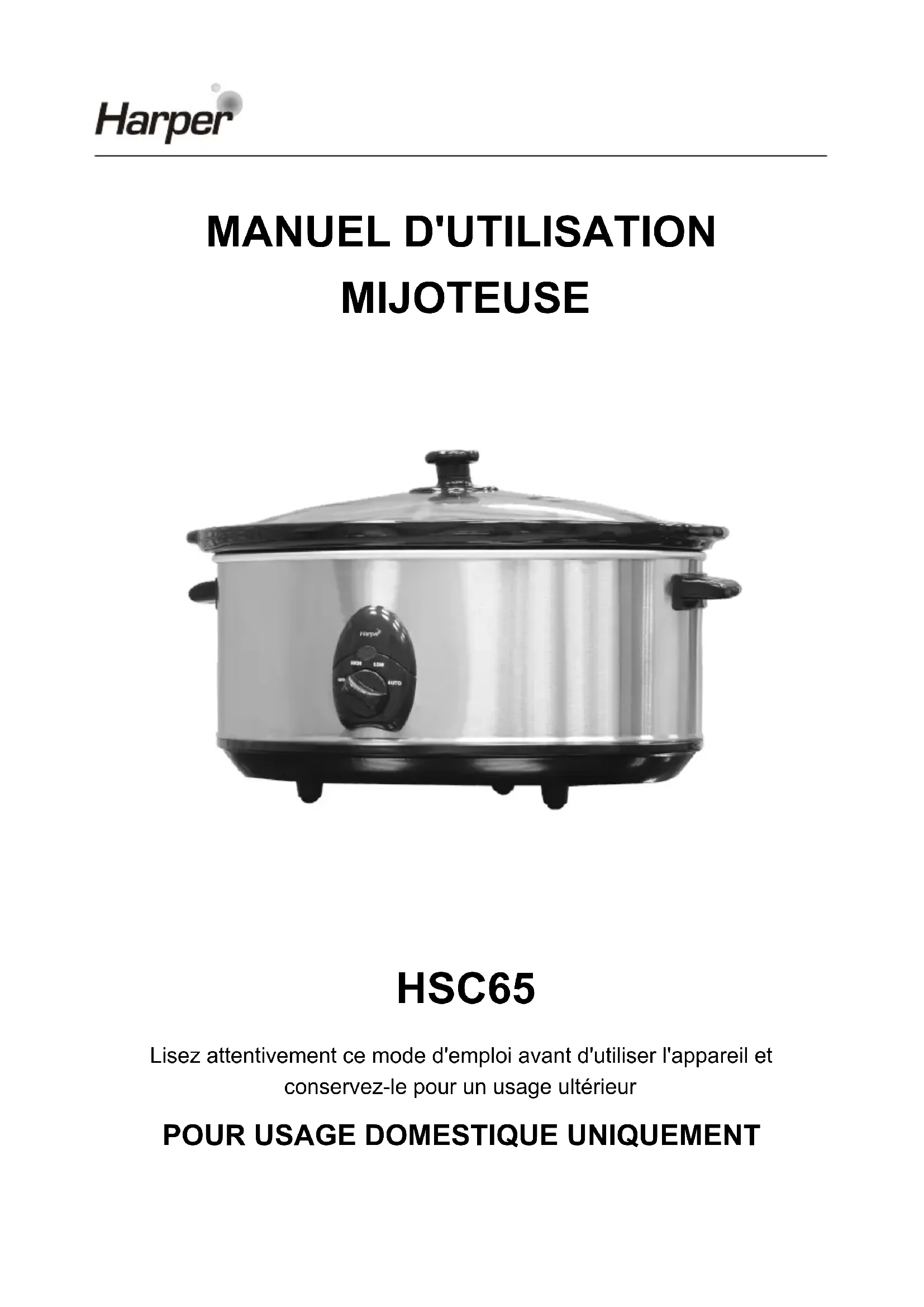 HSC65 - Mijoteuse HARPER - Notice d'utilisation et mode d'emploi gratuit