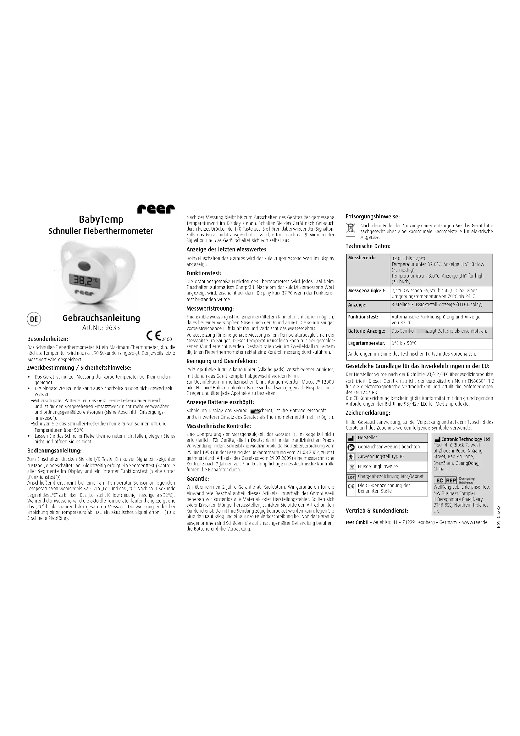 Téléchargez la notice de votre Thermomètre au format PDF gratuitement ! Retrouvez votre notice SC 33 TM - Reer et reprennez votre appareil électronique en main. Sur cette page sont publiés tous les documents nécessaires à l'utilisation de votre appareil SC 33 TM de la marque Reer.
