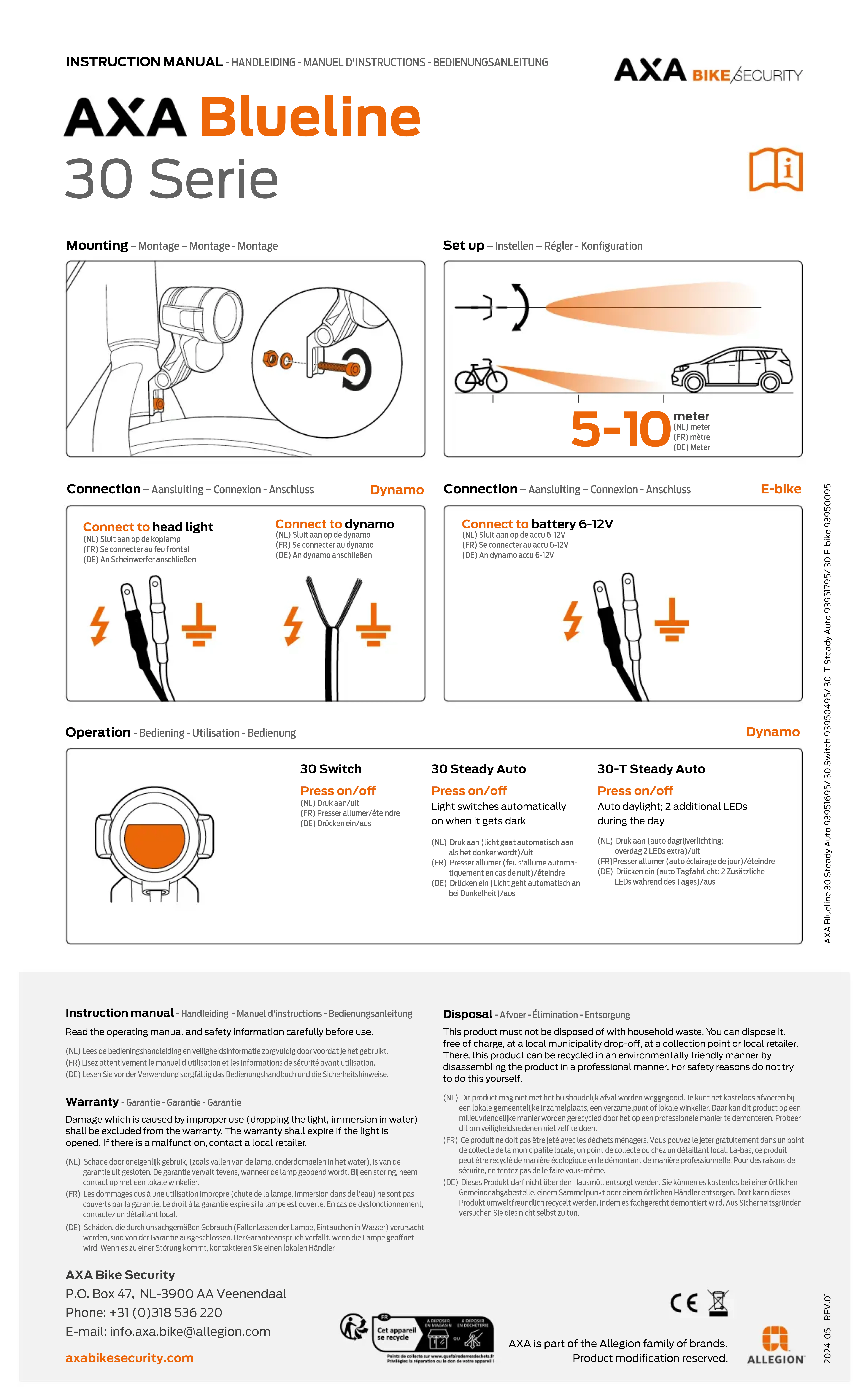 Blueline 30 - Lampe vélo AXA - Notice d'utilisation et mode d'emploi gratuit