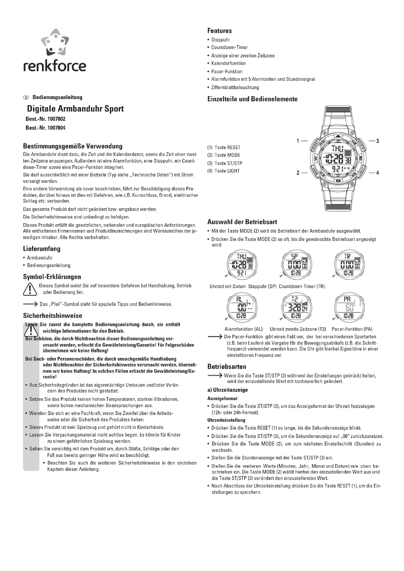 1007802 - Montre Renkforce - Notice d'utilisation et mode d'emploi gratuit