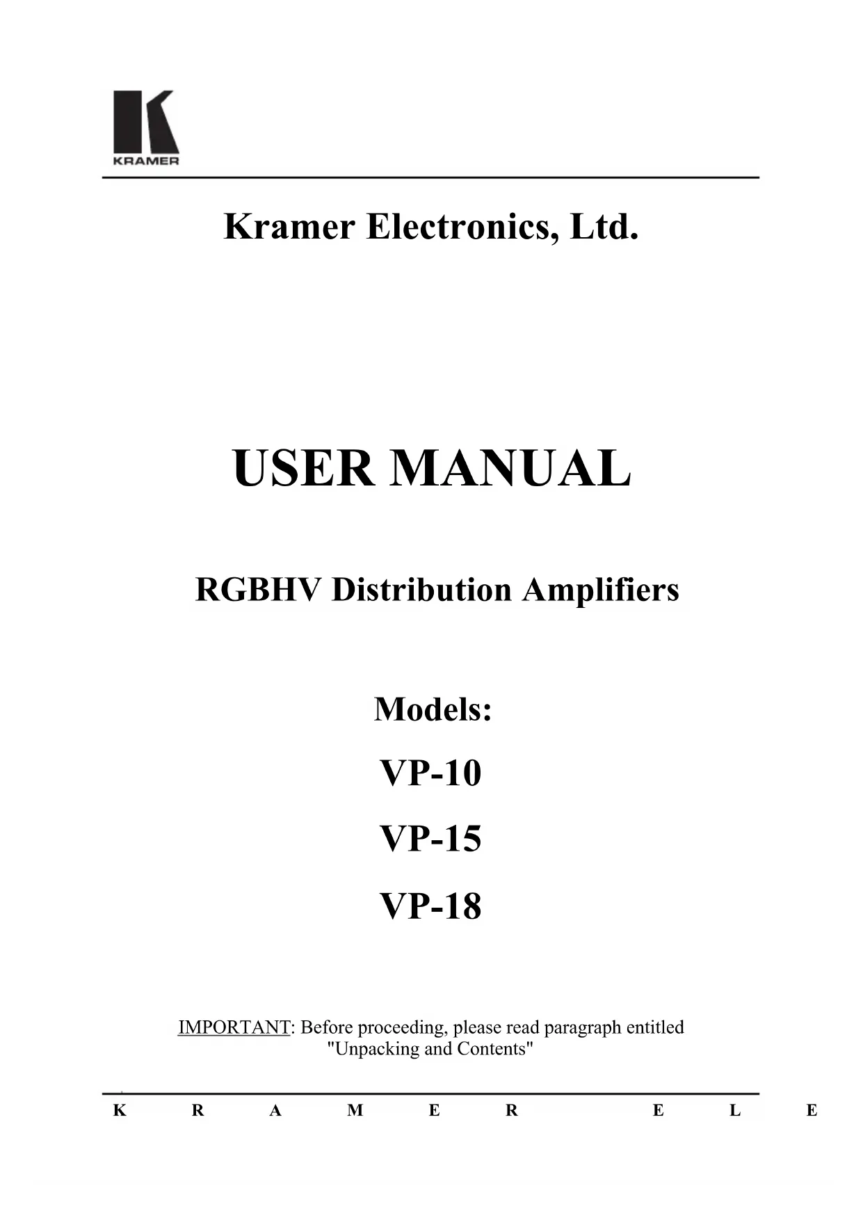 Retrouvez gratuitement la notice de l'appareil VP18 Kramer au format PDF.