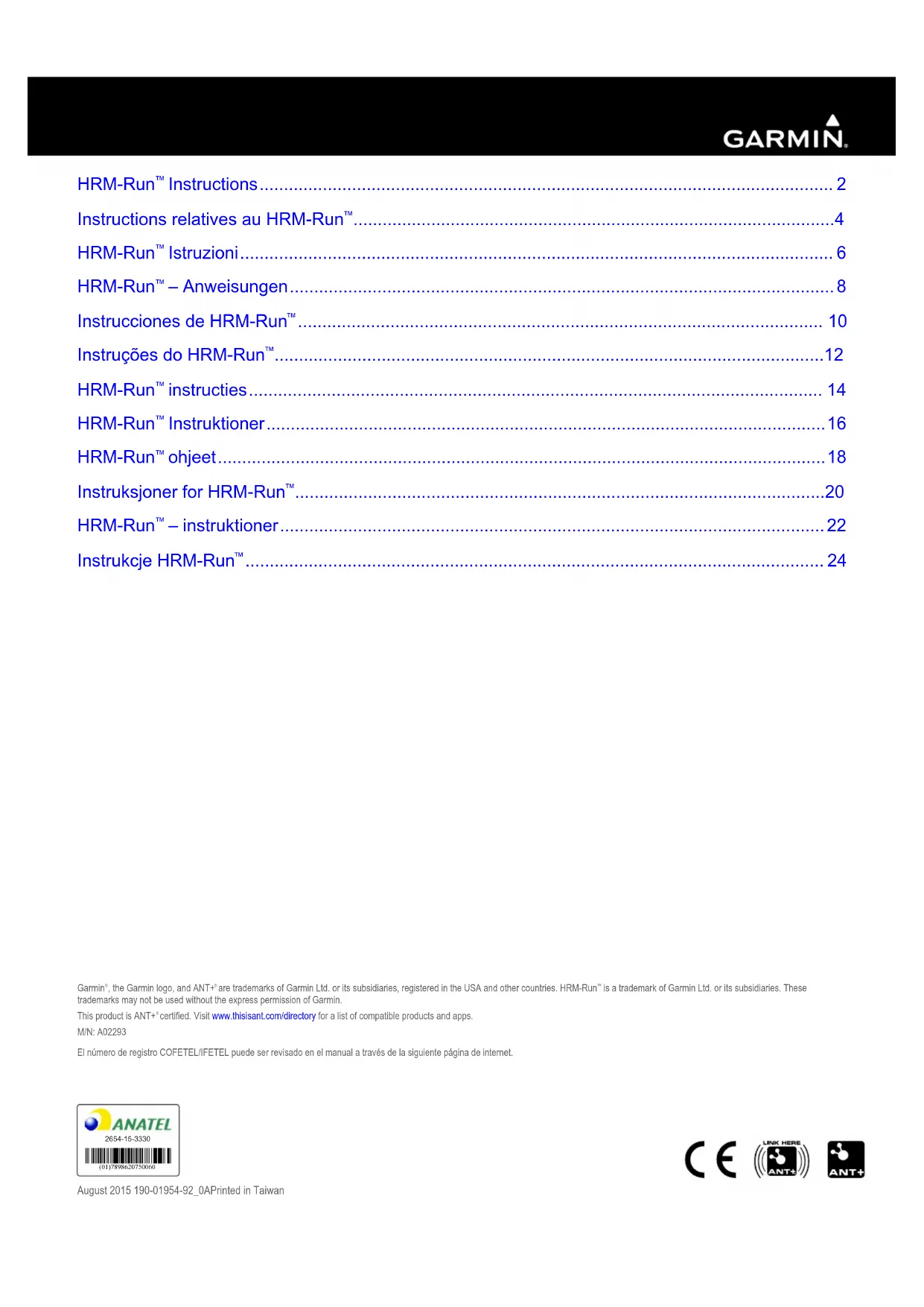 Retrouvez gratuitement la notice de l'appareil HRMRun GARMIN au format PDF.