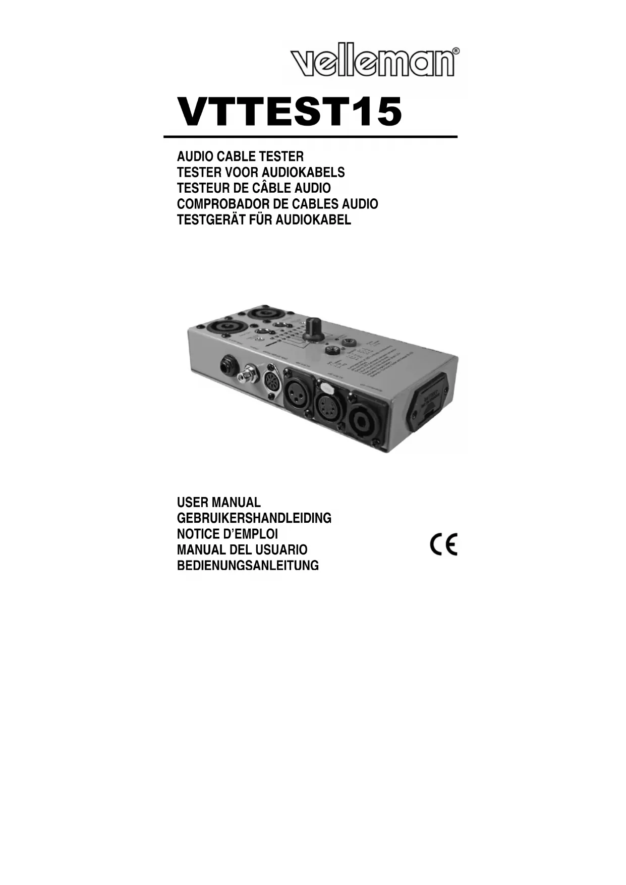 VTTEST15 - Testeur de câbles audio VELLEMAN - Notice d'utilisation et mode d'emploi gratuit