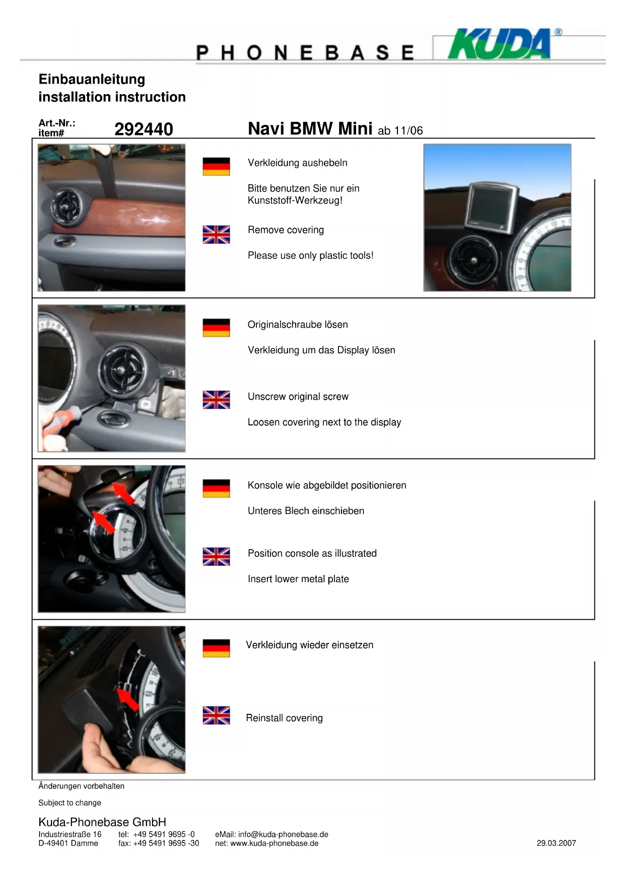 Retrouvez gratuitement la notice de l'appareil 292440 Kuda au format PDF.