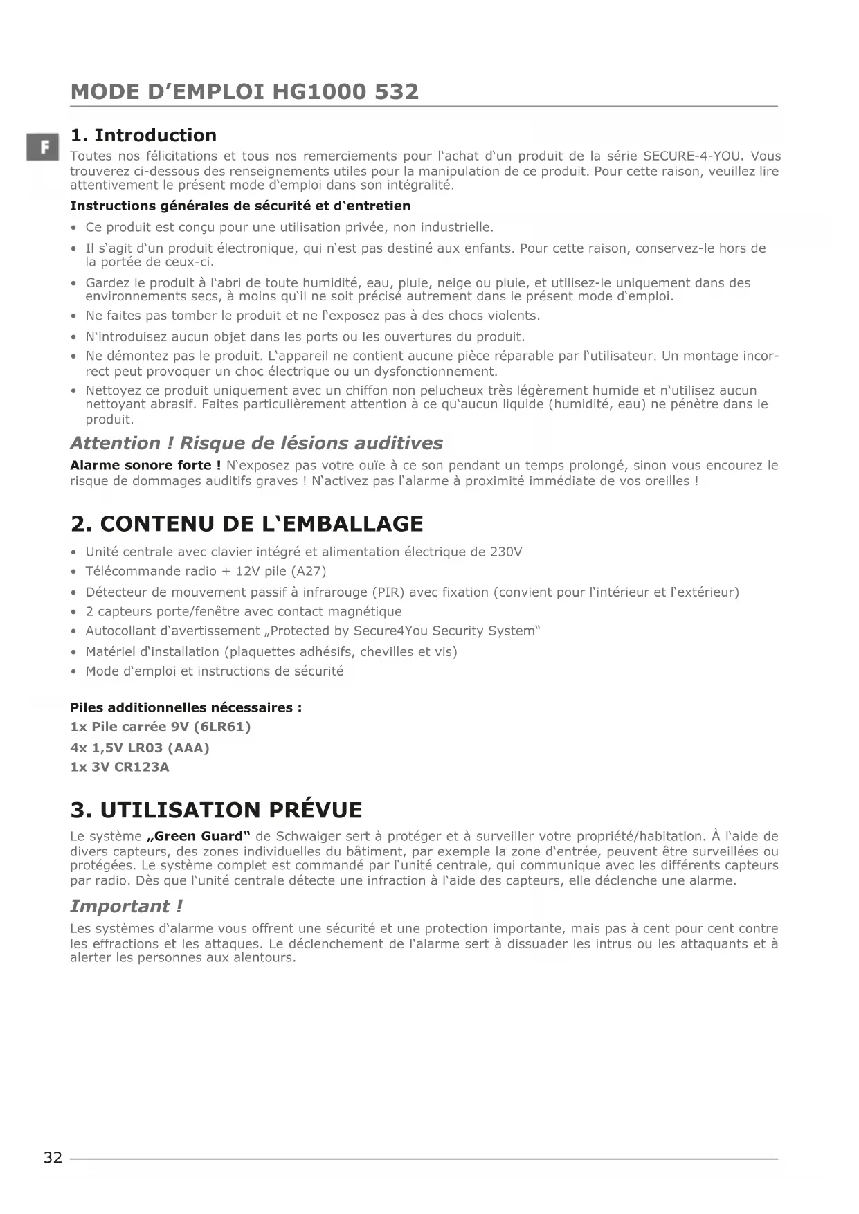 HG1000 532 - Système d'alarme Schwaiger - Notice d'utilisation et mode d'emploi gratuit