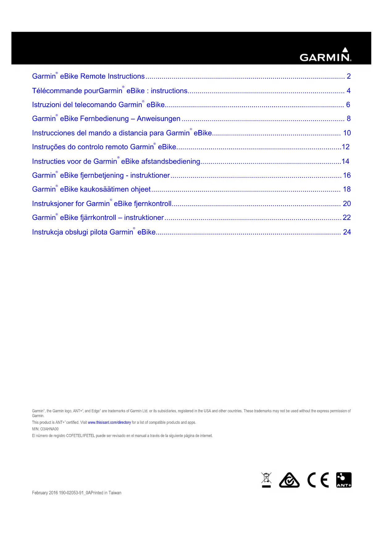 eBike Remote - Télécommande GARMIN - Notice d'utilisation et mode d'emploi gratuit