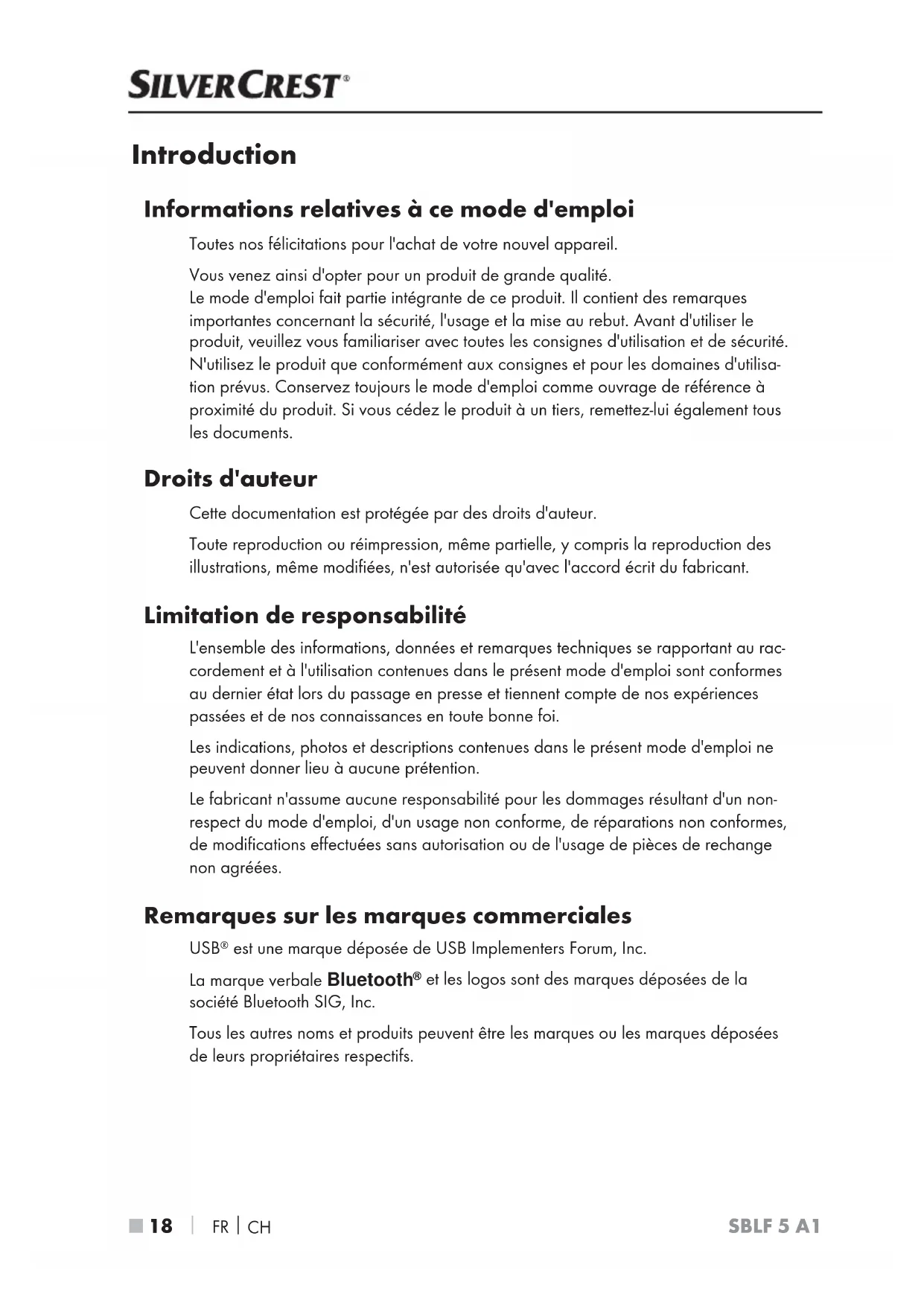 Retrouvez gratuitement la notice de l'appareil SBLF 5 A1 SILVERCREST au format PDF.