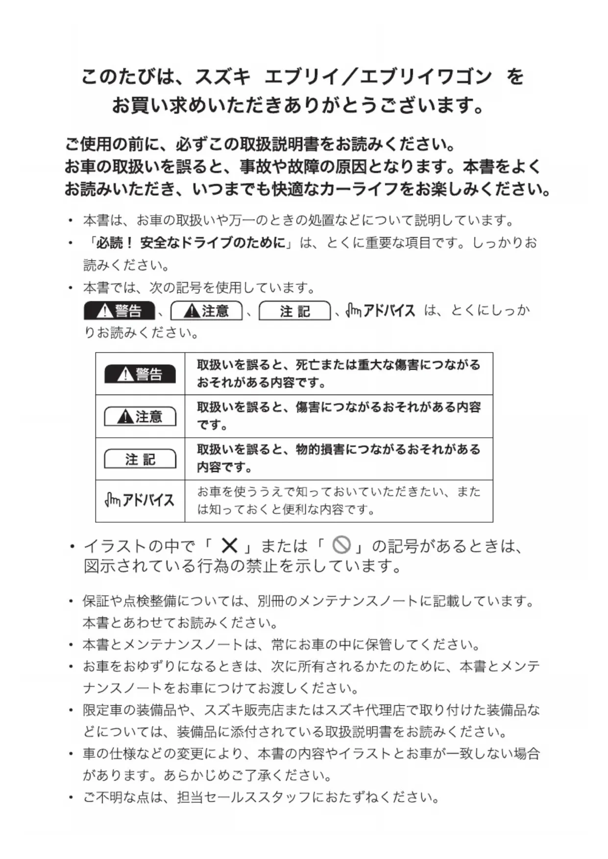 Téléchargez la notice de votre Voiture au format PDF gratuitement ! Retrouvez votre notice Every Wagon (2017) - SUZUKI et reprennez votre appareil électronique en main. Sur cette page sont publiés tous les documents nécessaires à l'utilisation de votre appareil Every Wagon (2017) de la marque SUZUKI.