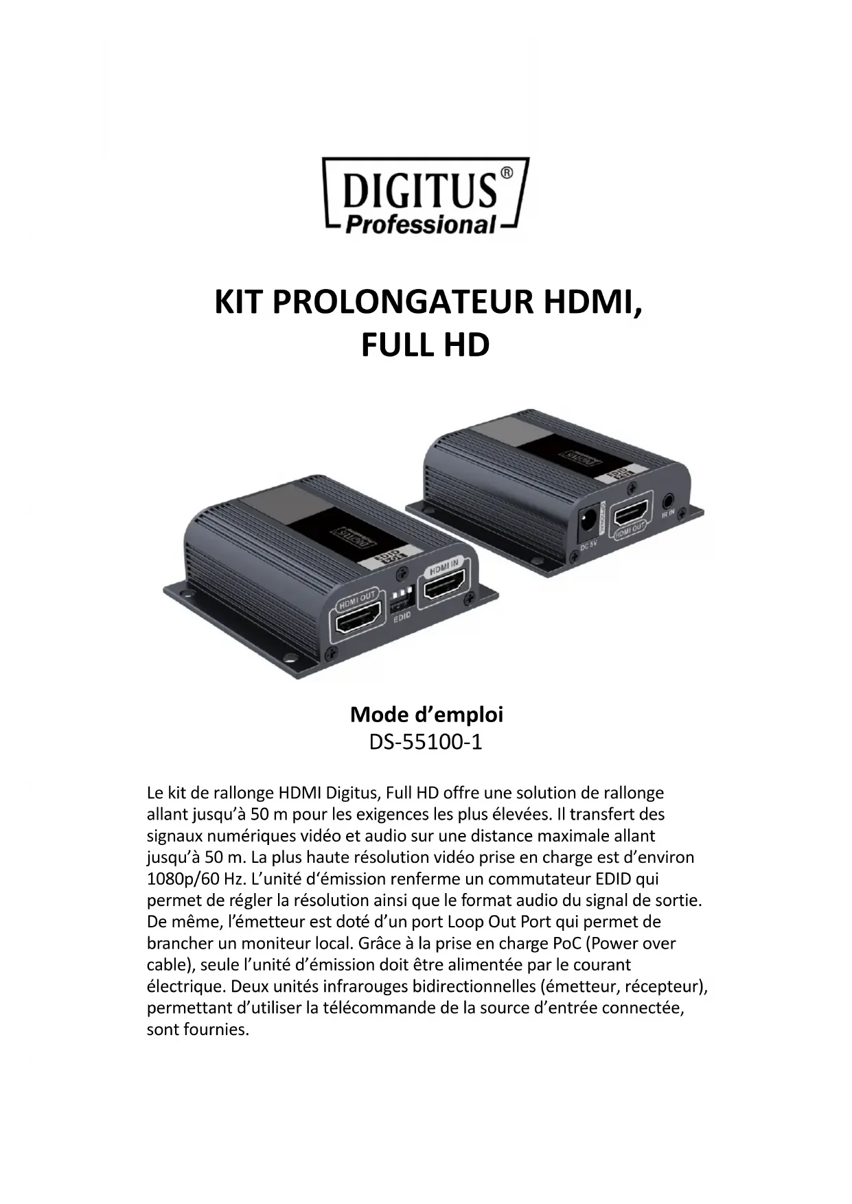 DS551001 - Extension audio/video Digitus - Notice d'utilisation et mode d'emploi gratuit