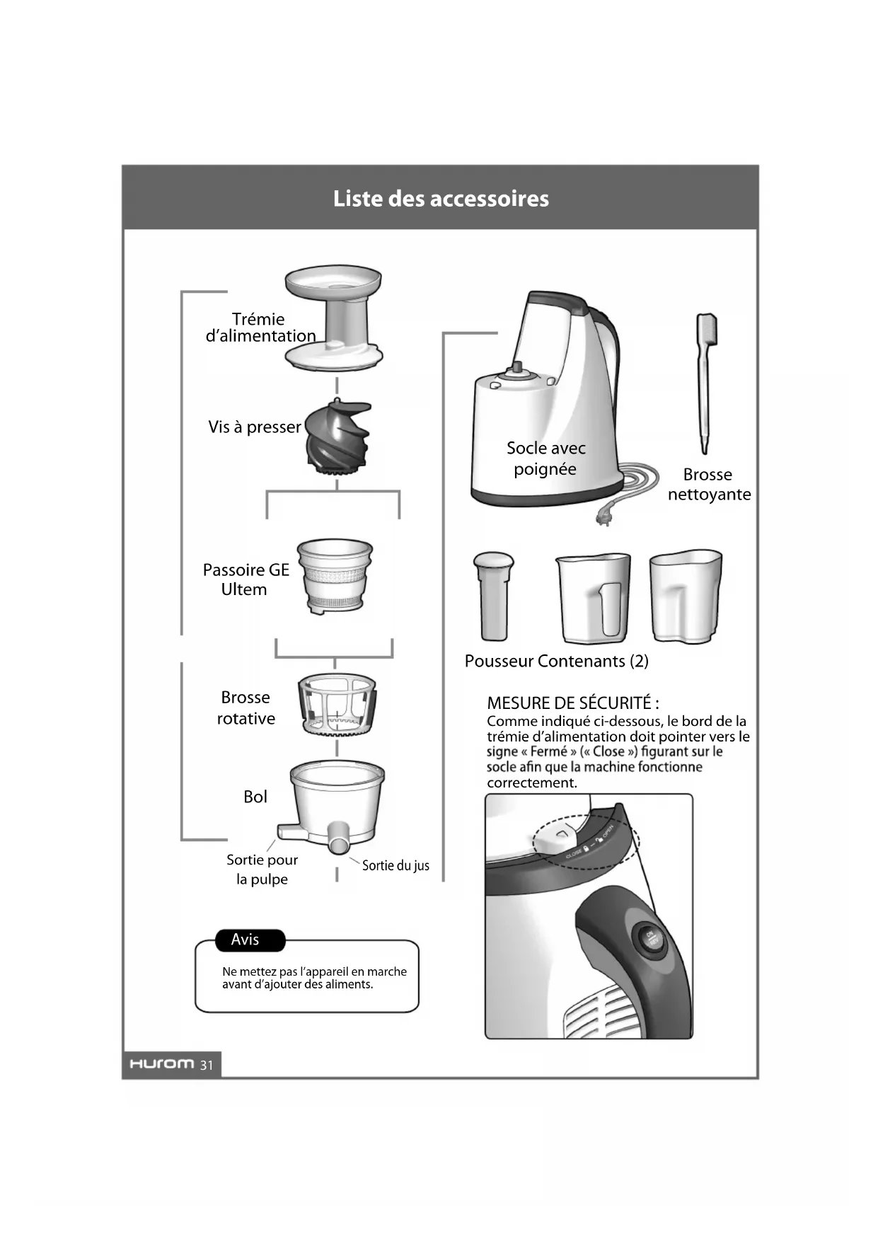 HU100 - Extracteur de jus Hurom - Notice d'utilisation et mode d'emploi gratuit