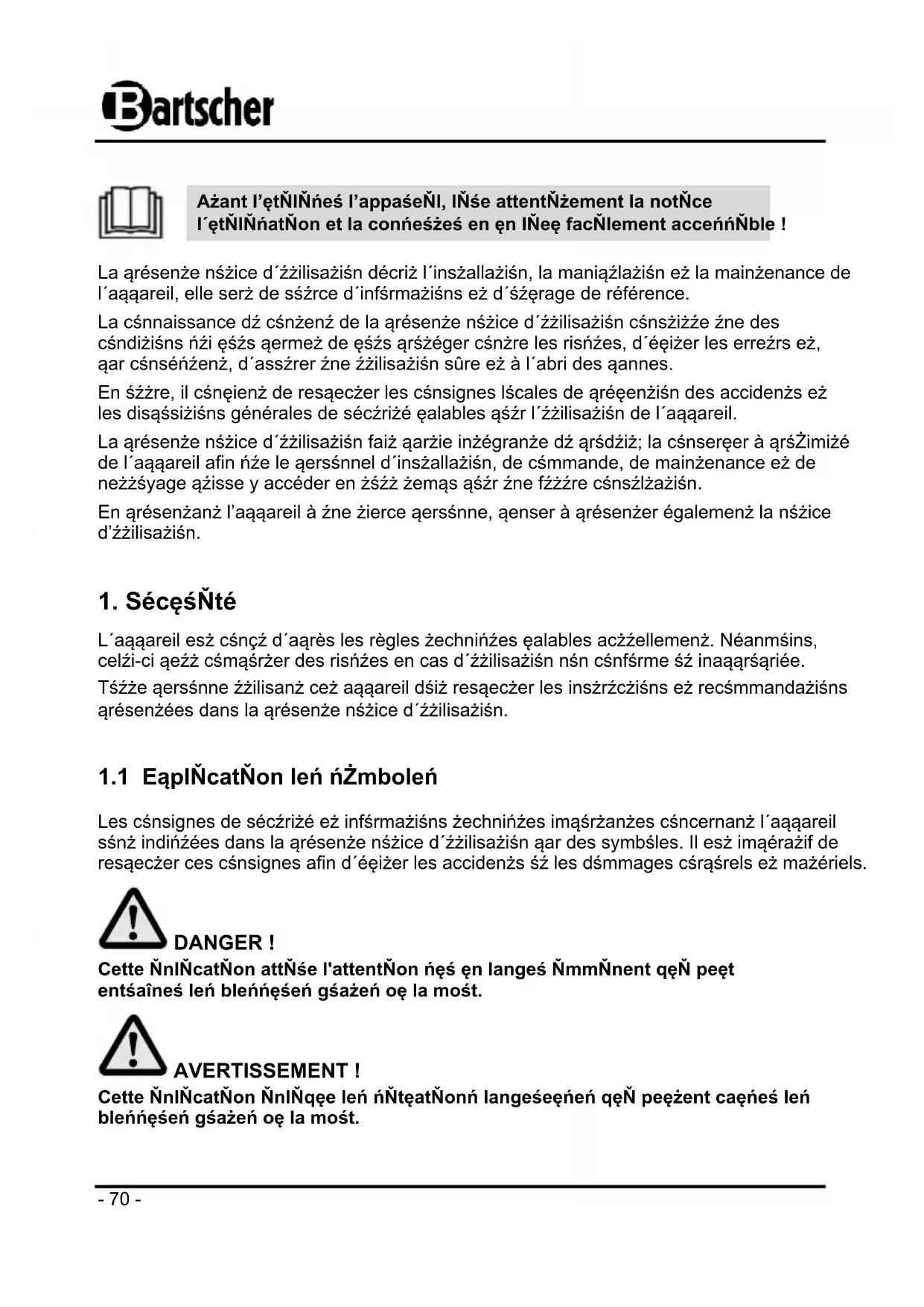 MODE D'EMPLOI 1582101 BARTSCHER