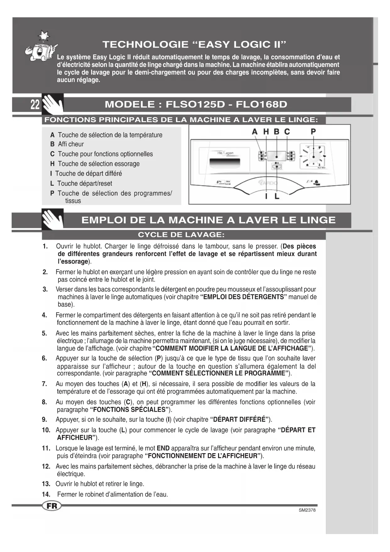 FLSO125D - Machine à laver Ardo - Notice d'utilisation et mode d'emploi gratuit