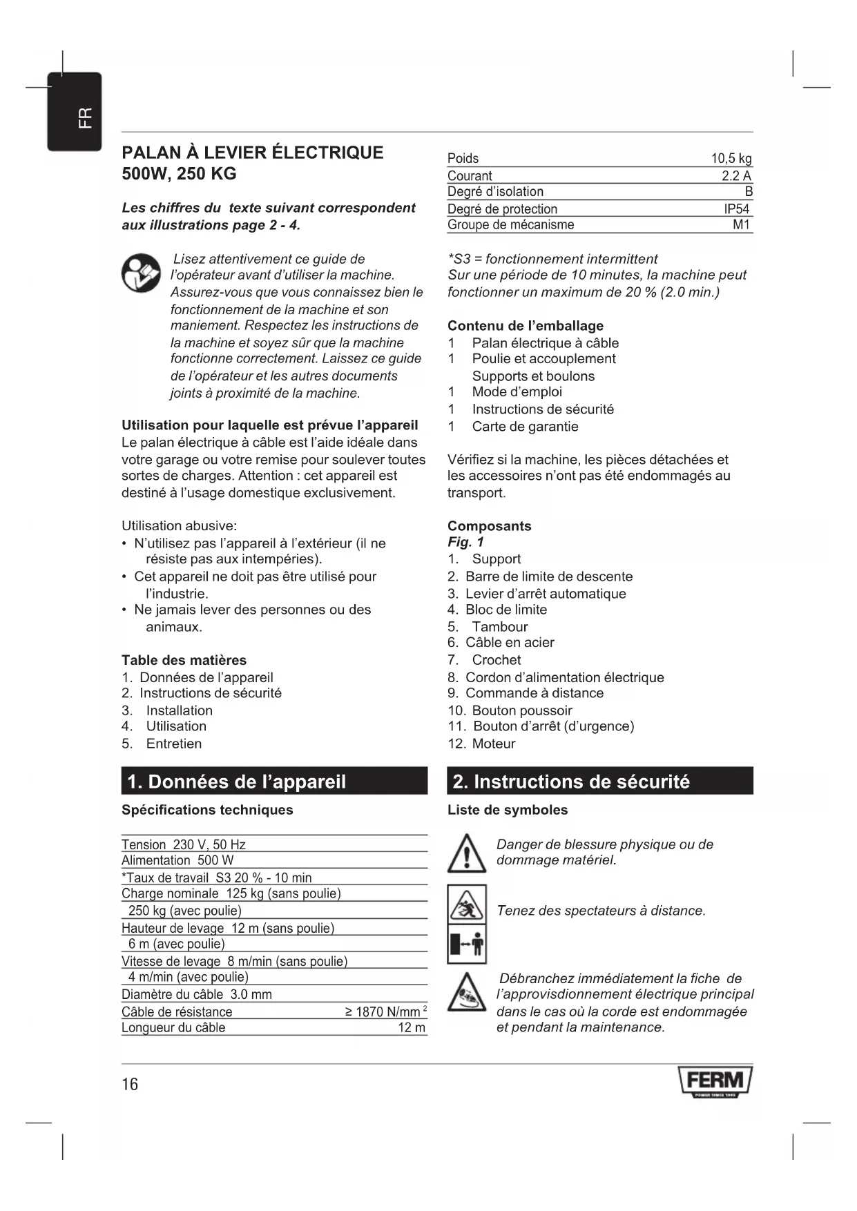 LHM1011 - Treuil électrique Ferm - Notice d'utilisation et mode d'emploi gratuit