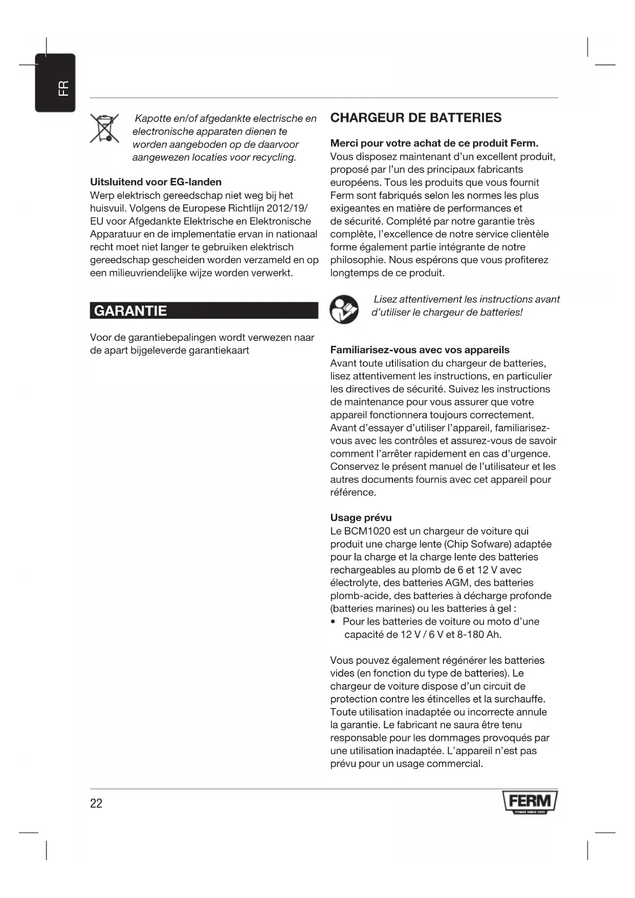 BCM1020 - Chargeur de batterie Ferm - Notice d'utilisation et mode d'emploi gratuit