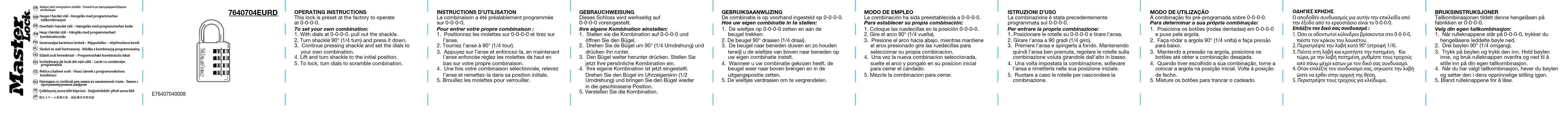7640704EURD - Cadenas à combinaison Master Lock - Notice d'utilisation et mode d'emploi gratuit