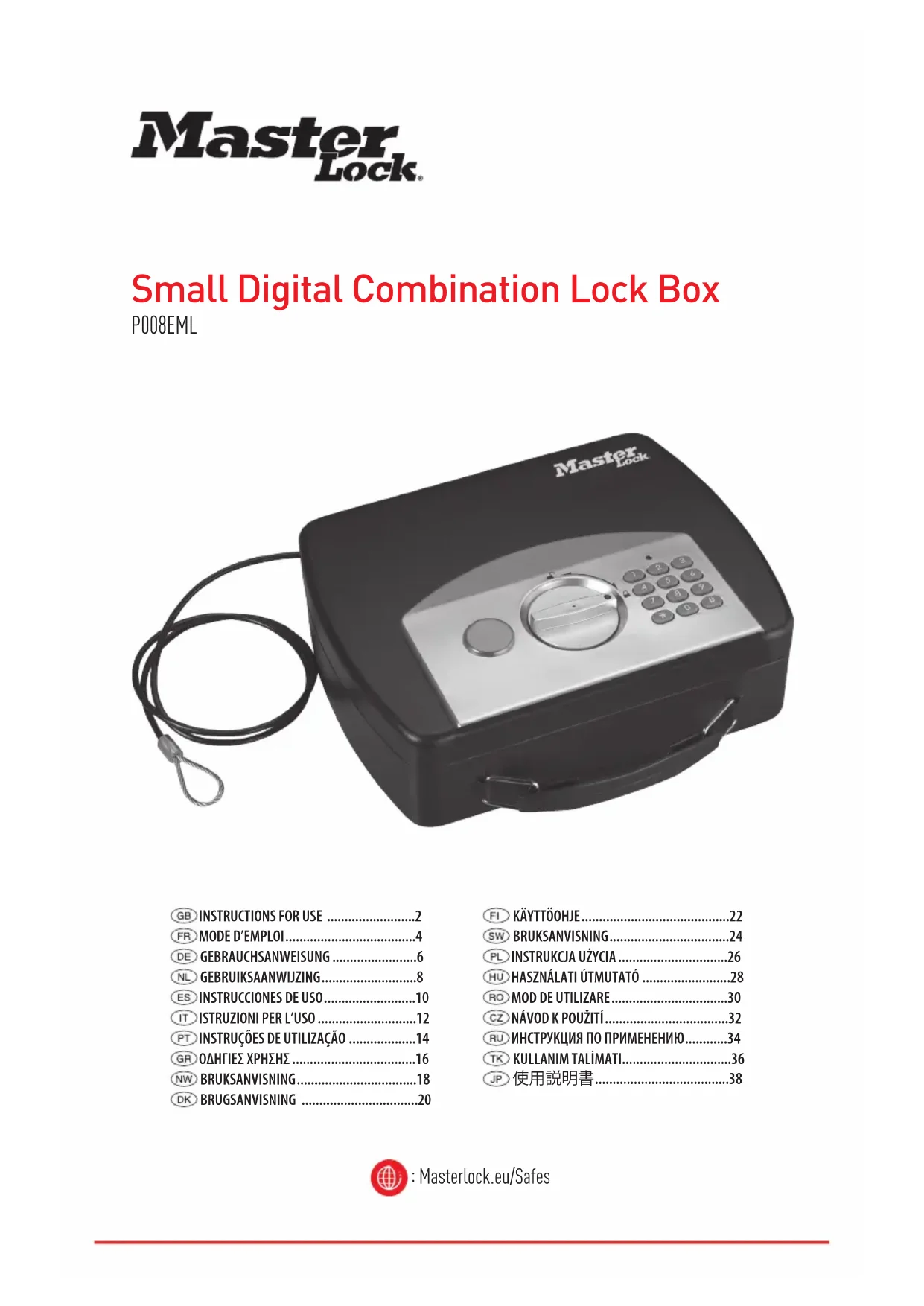 P008EML - Coffre-fort numérique Master Lock - Notice d'utilisation et mode d'emploi gratuit