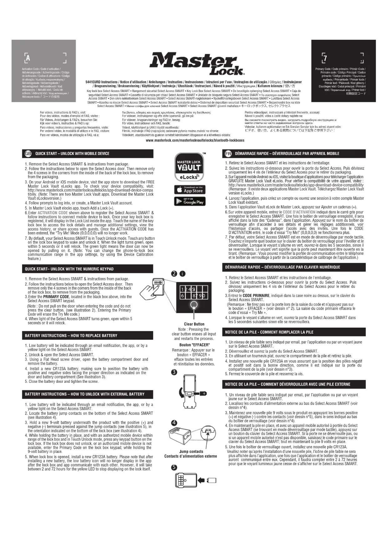 Retrouvez gratuitement la notice de l'appareil 5441EURD Master Lock au format PDF.