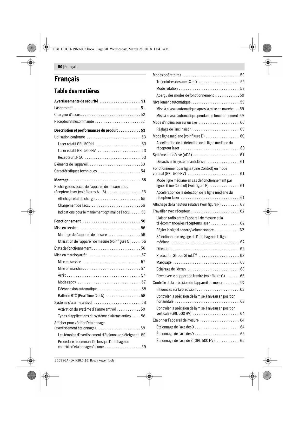 - OBJ_BUCH-1960-005.book Page 50 Wednesday, March 28, 2018 11:41 AMFrançais | 51 Bosch Power Tools 1 609 92A 4DX | (28.3.18) Instructions d’utilisation p. 66