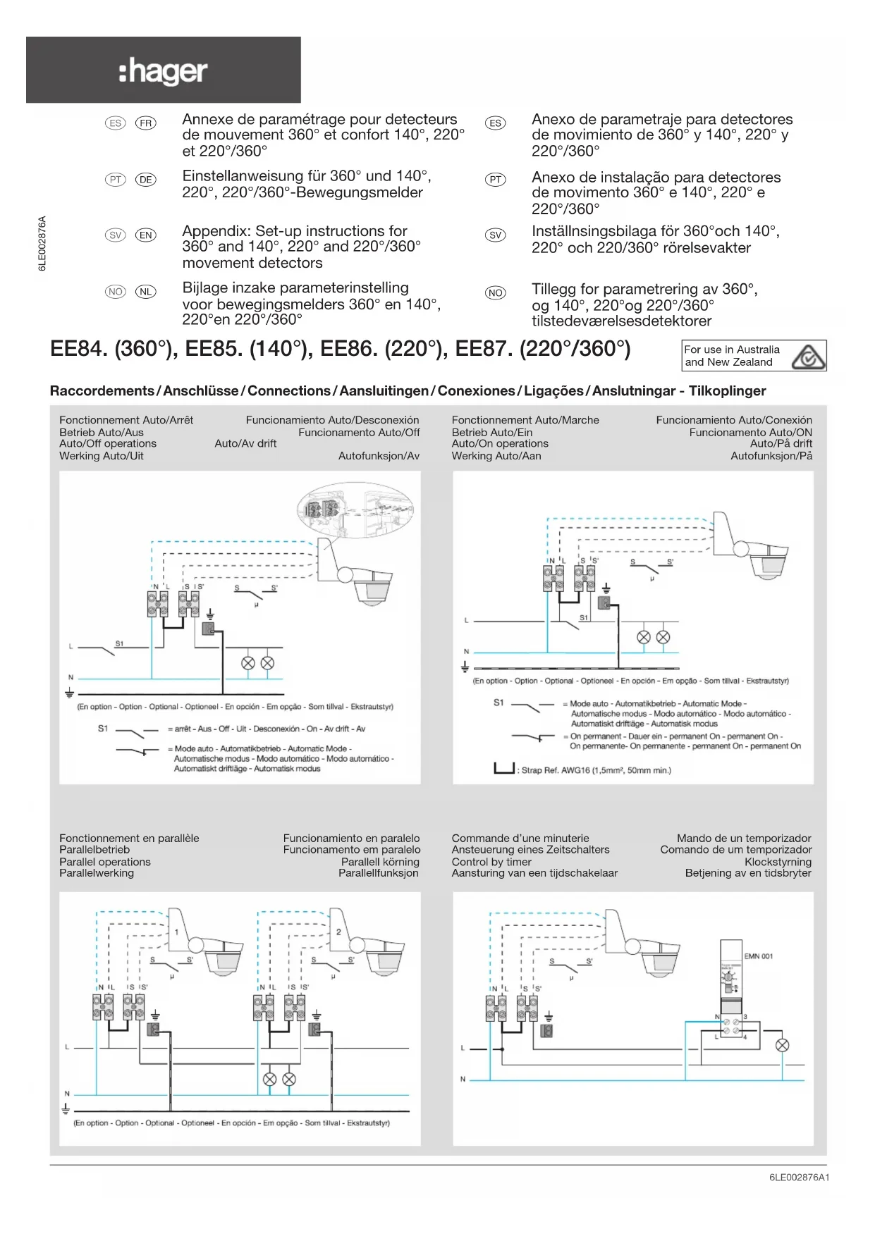 EE840 - Détecteur de mouvements HAGER - Notice d'utilisation et mode d'emploi gratuit
