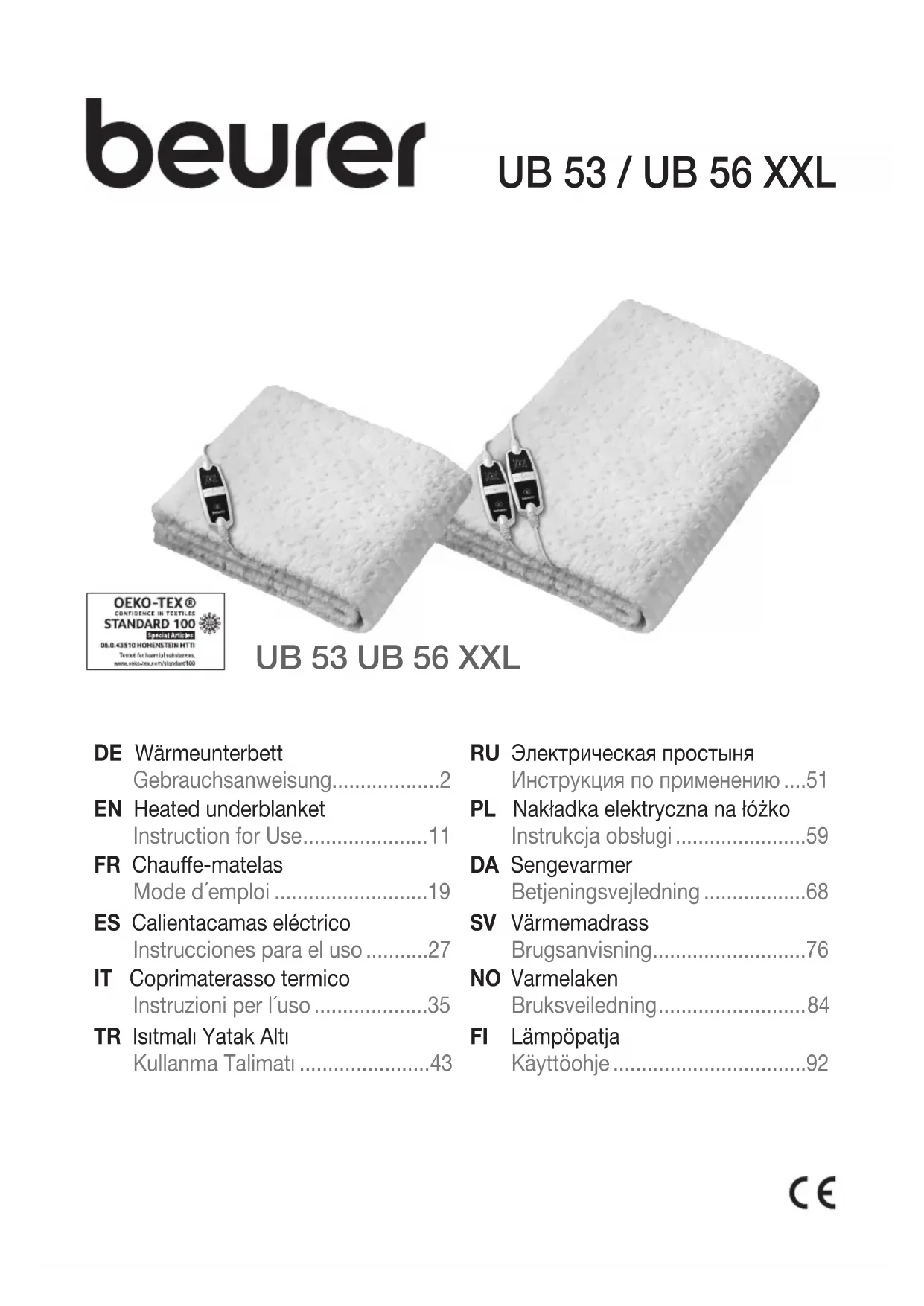 UB 53 Teddy Single - Couverture/coussin chauffant BEURER - Notice d'utilisation et mode d'emploi gratuit